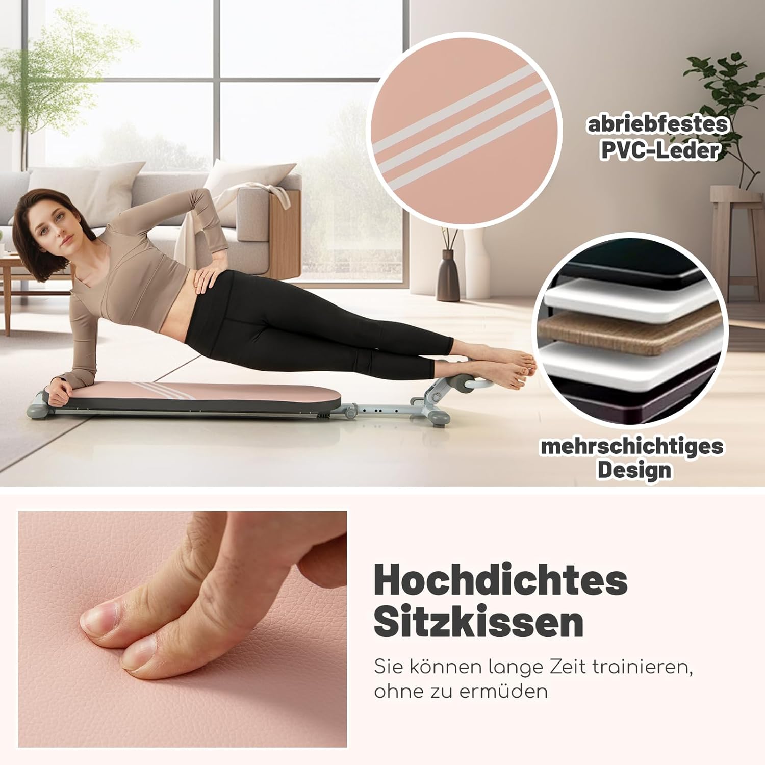 - 【Mehrere Trainingsmethoden】Diese multifunktionale Fitnessbank bietet Ihnen eine Vielzahl von Übungen, um Ihren unterschiedlichen Trainingsanforderungen gerecht zu werden. Die Trainingsmöglichkeiten umfassen Sit-Ups, Taillen- und Rückentraining,