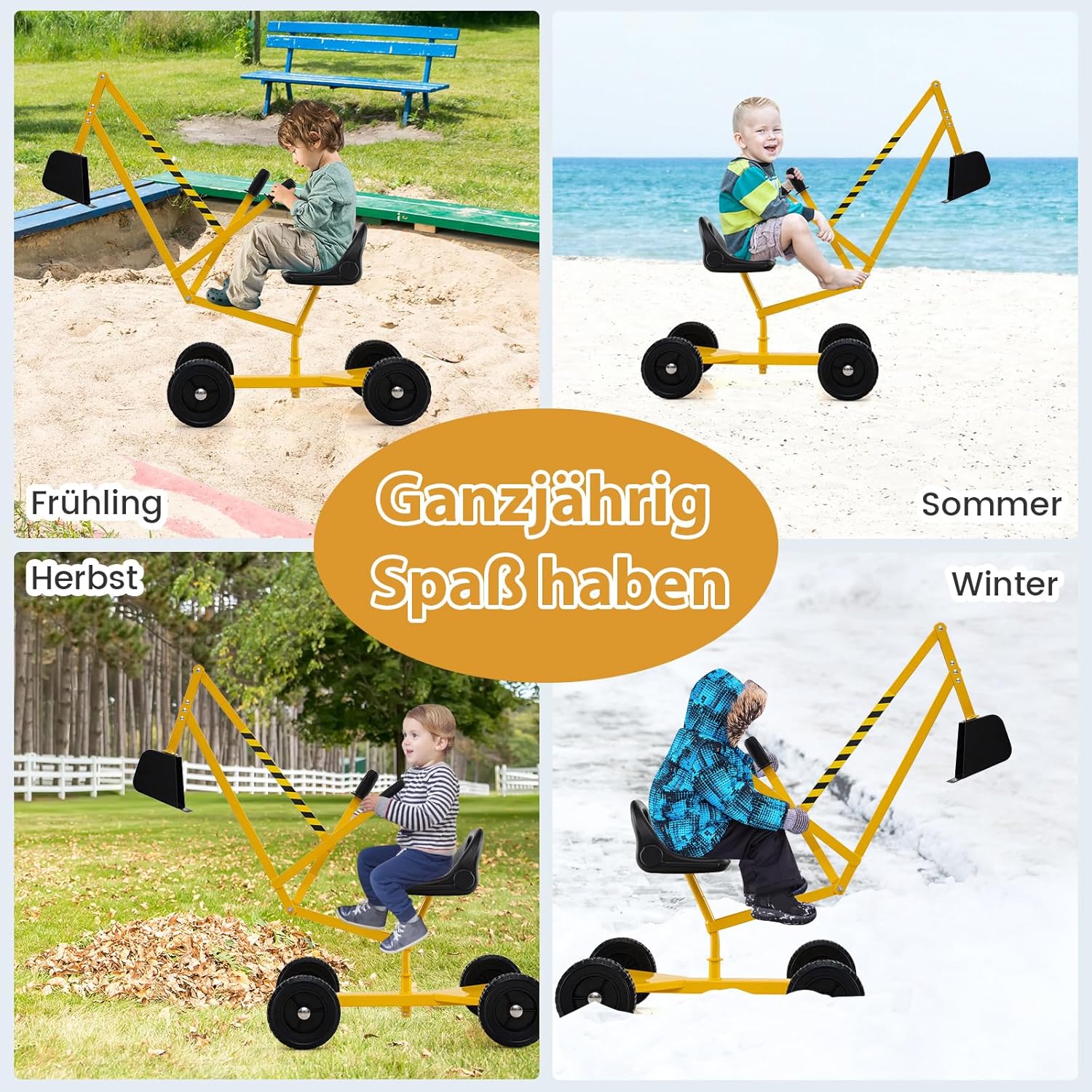 - 【Sanfte Fahrt & robuste Struktur】Ausgestattet mit 4 Rollen, bieten die Aufsitzbagger eine stabile Fahrt auf verschiedenen Strassen. Darüber hinaus sorgt der robuste Metallrahmen für starken und stabilen Halt. Die Belastbarkeit beträgt xx kg.