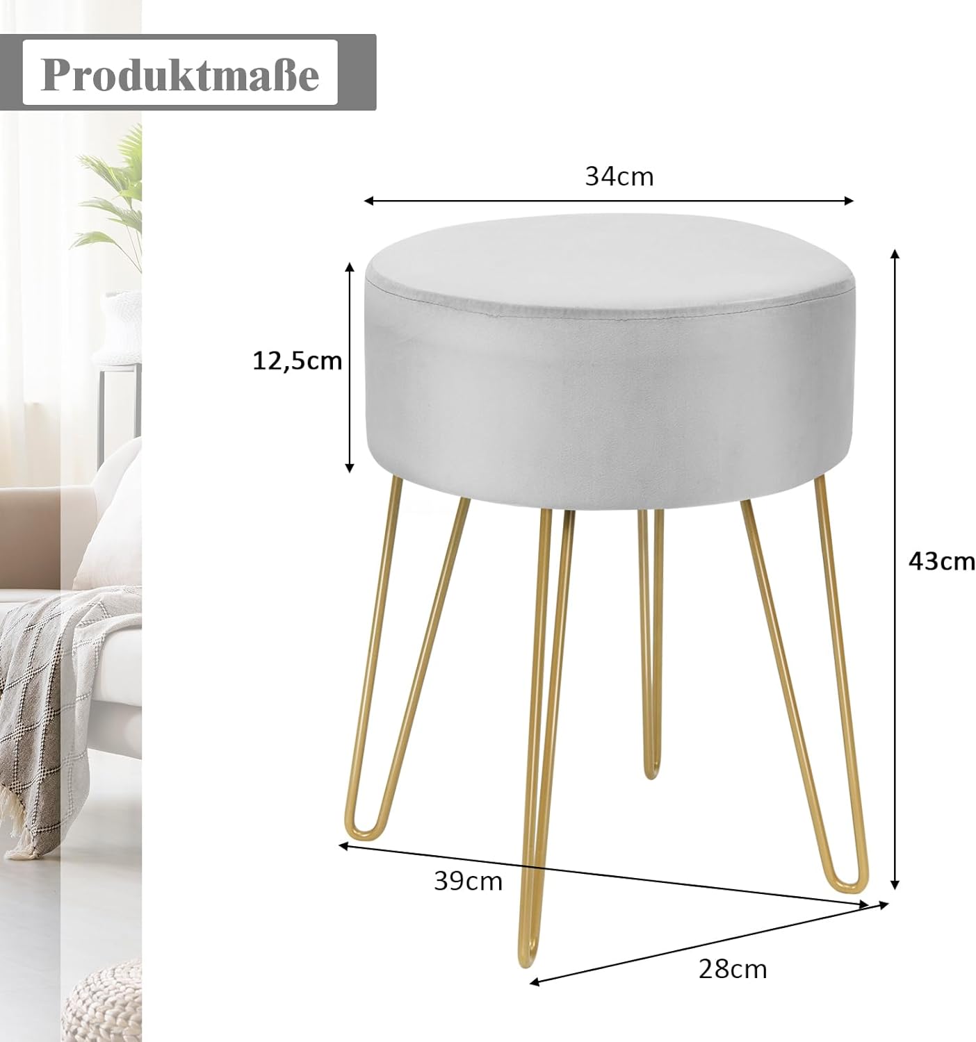 - 【Leichtes & platzsparendes Design】Der Samthocker ist leicht, wodurch er sich bequem tragen und verrücken lässt. Darüber hinaus zeichnet er sich durch sein Design ohne Lehne aus, das es Ihnen erlaubt, den Hocker platzsparend direkt unter den Tisch