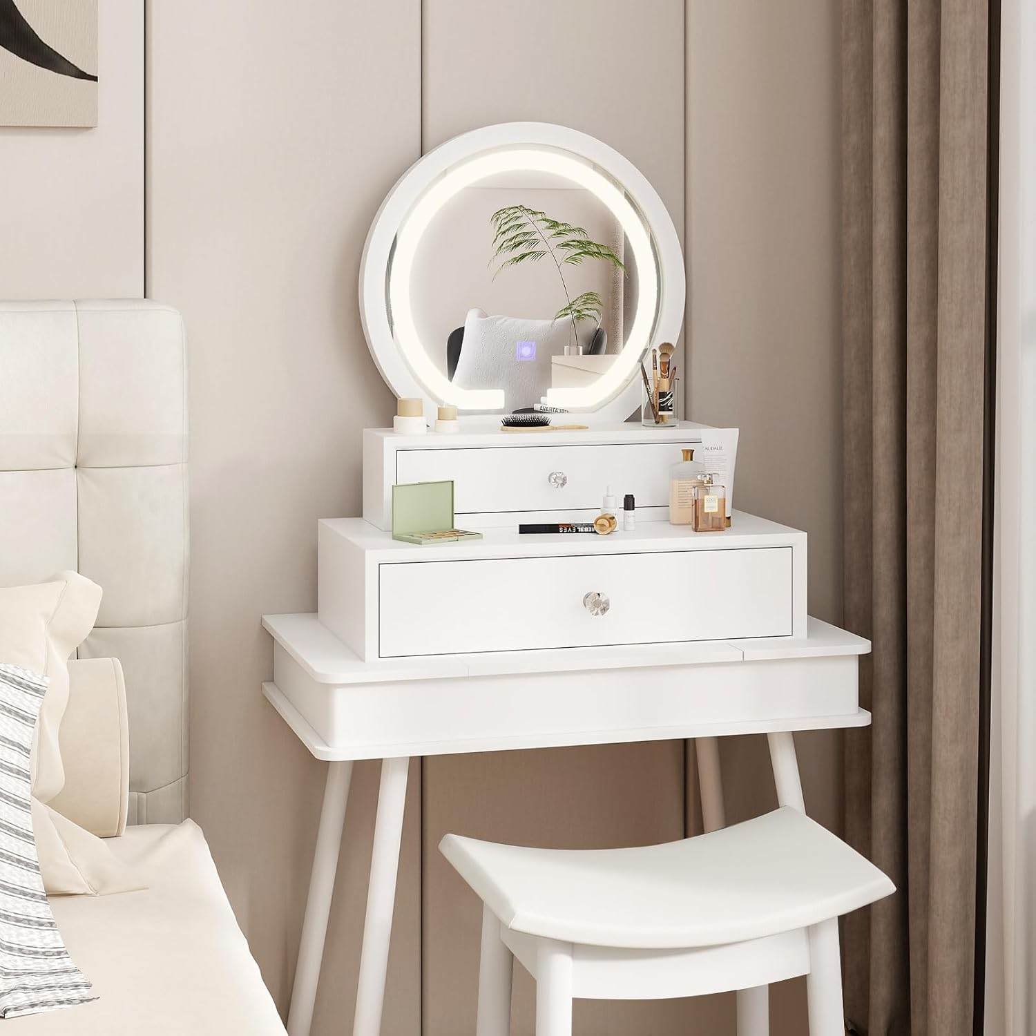 - 【Schlichtes und doch Stilvolles Aussehen】 Ausgestattet mit einem modernen Äusseren, vereint dieser Tisch-Ankleidespiegel ästhetische Schönheit und Praktikabilität. Erlesene Kristall-Knopfgriffe und die weisse Oberfläche verleihen ihm einen Hauch