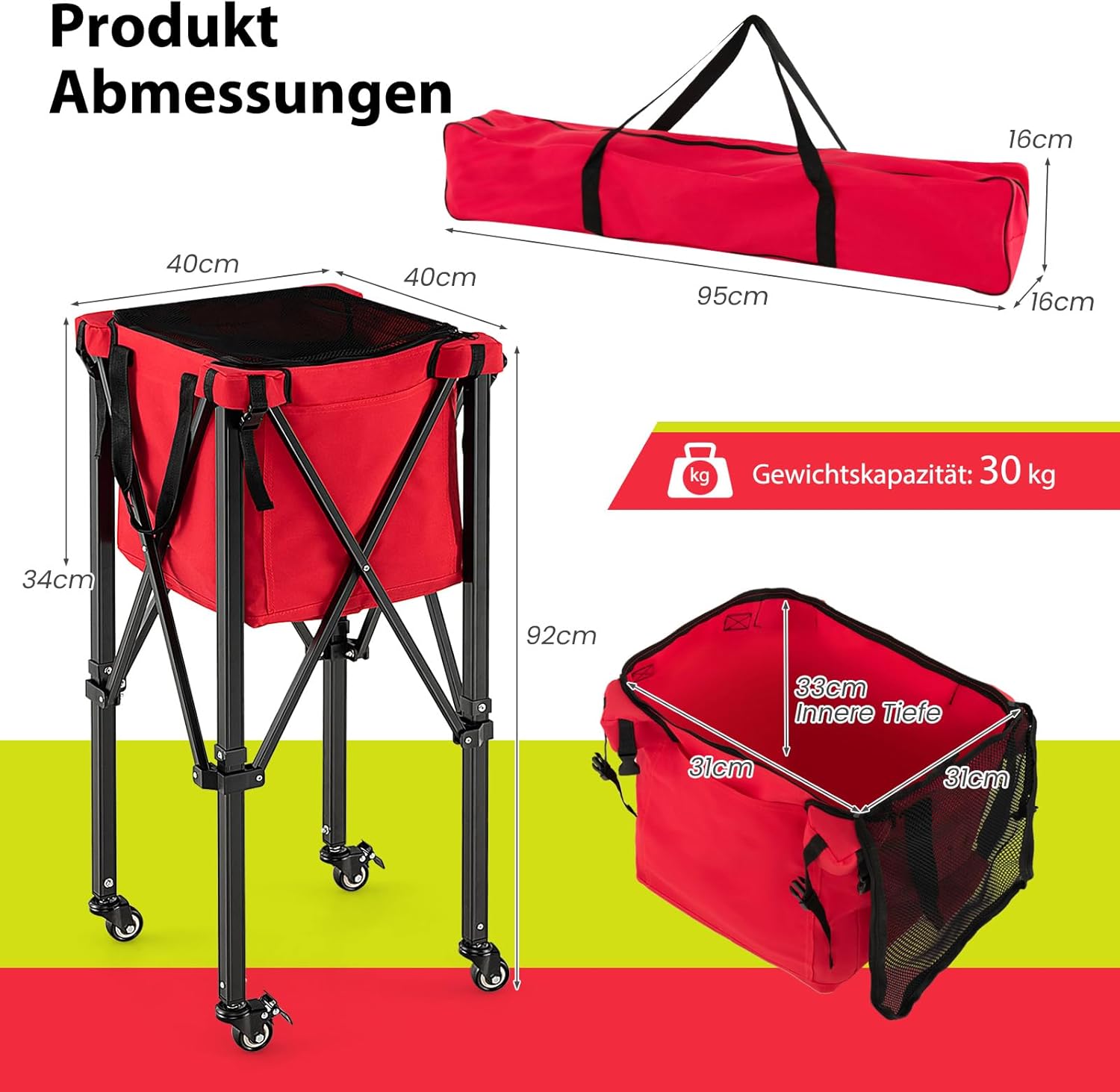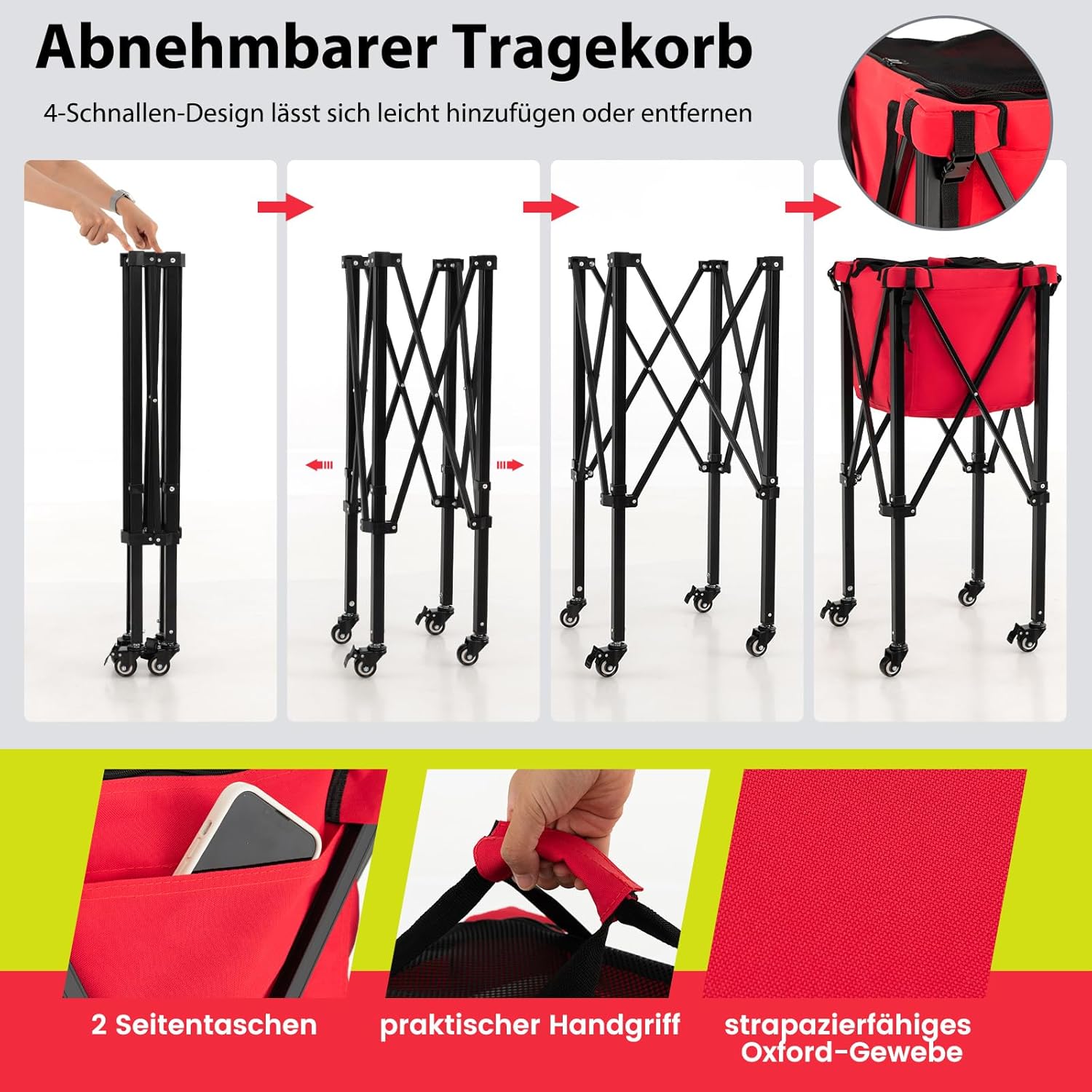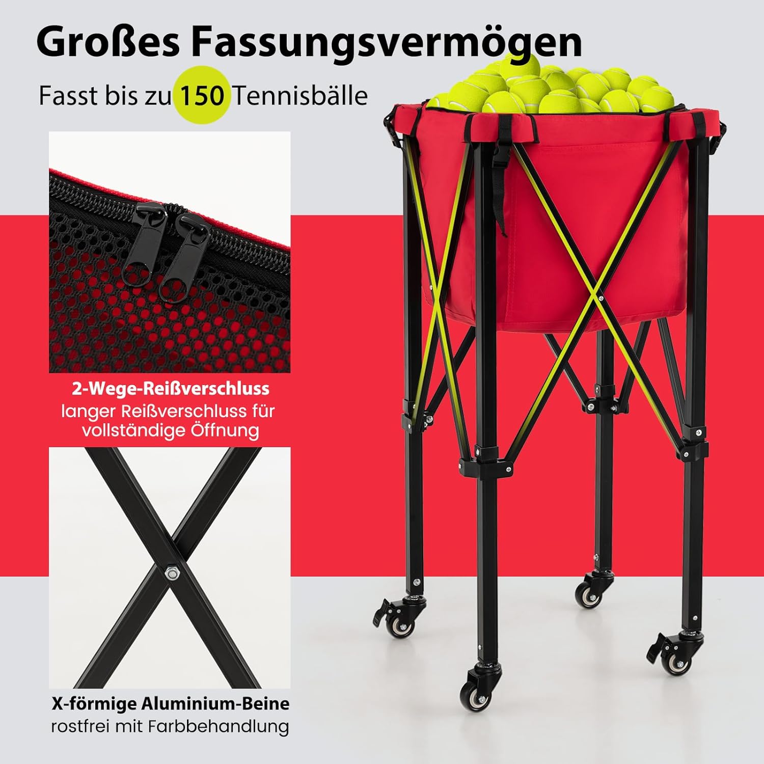 - 【Klappbares & leichtes Design】Der Rahmen dieses Tennisballwagens lässt sich nach dem Entfernen des Korbs einfach auf eine kompakte Grösse zusammenfalten. Sie können den Ballwagen mit der Tragetasche und dem geringen Gewicht von 3 kg mühelos