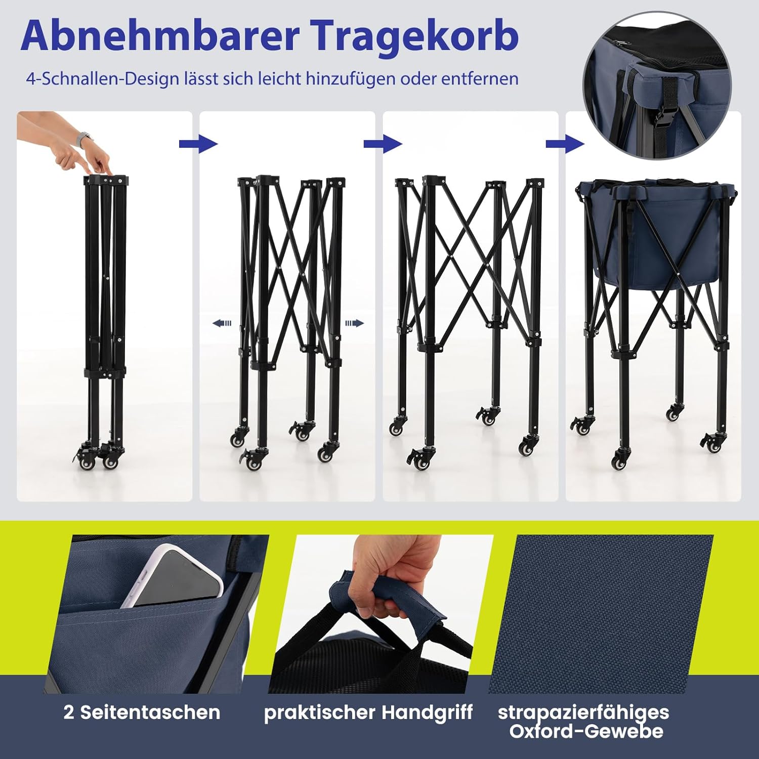 - 【Klappbares & leichtes Design】Der Rahmen dieses Tennisballwagens lässt sich nach dem Entfernen des Korbs einfach auf eine kompakte Grösse zusammenfalten. Sie können den Ballwagen mit der Tragetasche und dem geringen Gewicht von 3 kg mühelos
