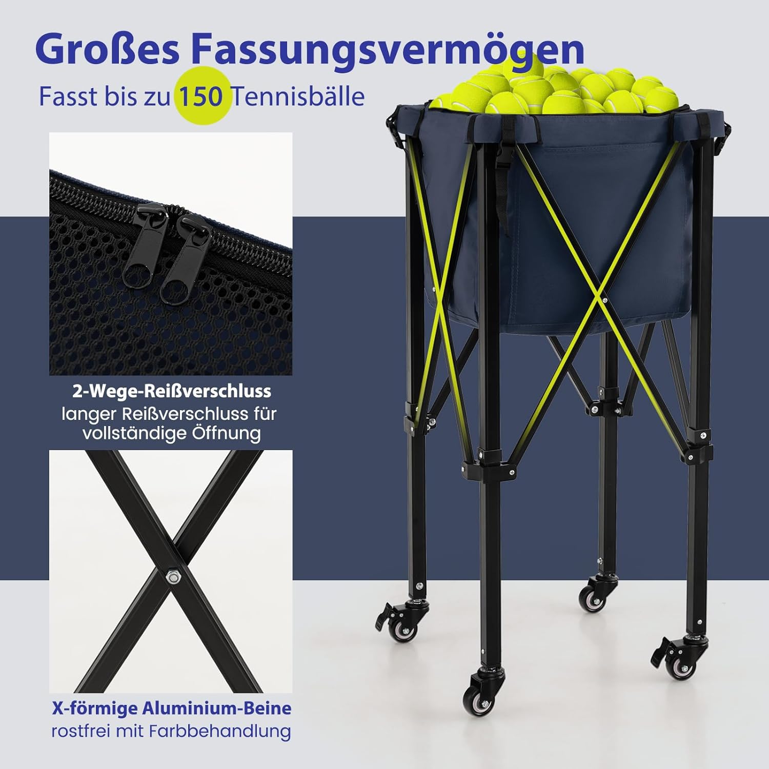 - 【Grossem Fassungsvermögen】Dieser Tennisballwagen bietet Platz für bis zu 150 Tennisbälle. Es gibt 2 Seitentaschen und eine abnehmbare Tasche zur Aufbewahrung Ihrer Telefone, Schlüssel usw.