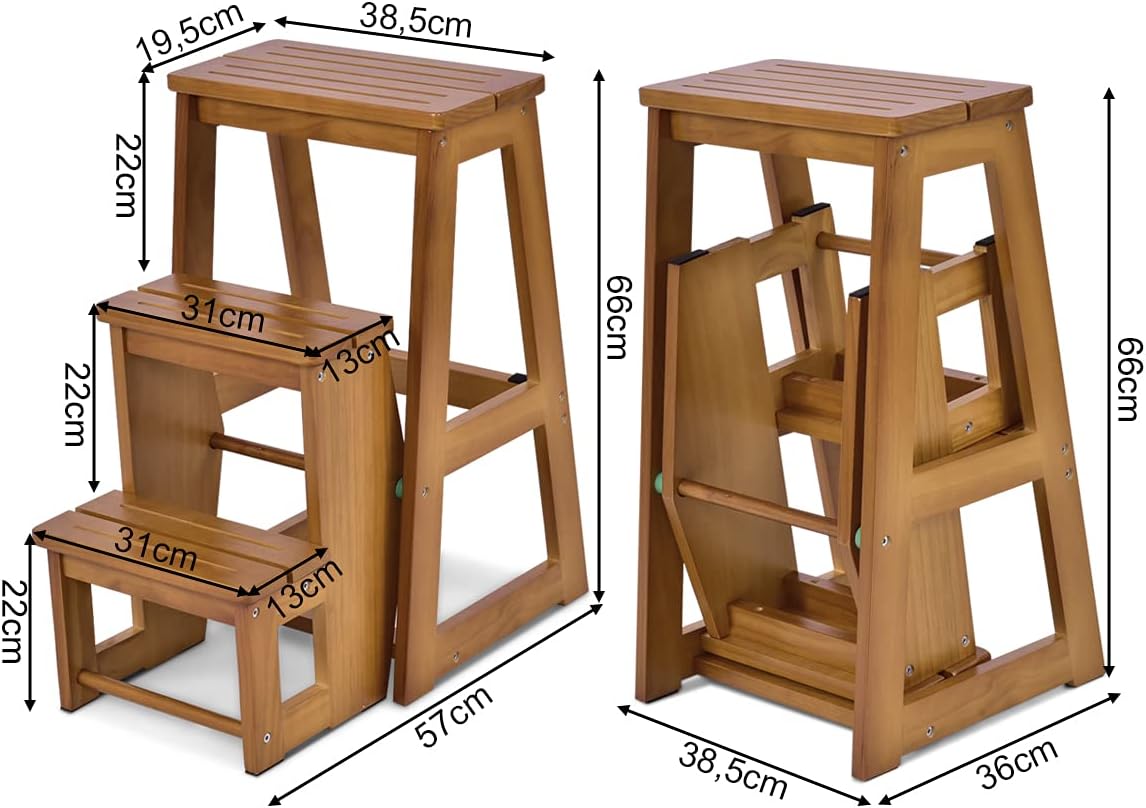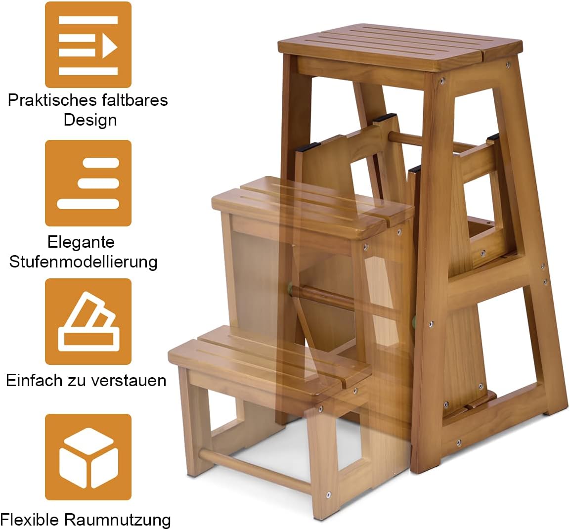 - 【Hochwertiges Material und gute Verarbeitung】Der Leiterstuhl ist aus massivem Kiefernholz hergestellt, schön, robust und langlebig.