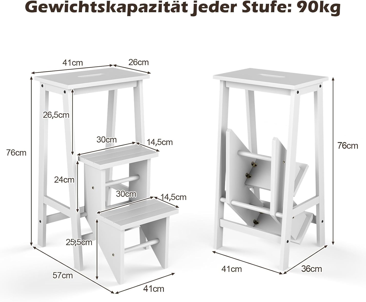 - 【Einfach zu montieren】 Produktmasse: 57 x 41 x 76 cm (L x B x H). Faltmasse: 36 x 41 x 76 cm (L x B x H). Sie müssen nur ein paar Teile zusammenfügen und schon erhalten Sie einen wunderbaren Tritthocker. Das Installationshandbuch bietet eine