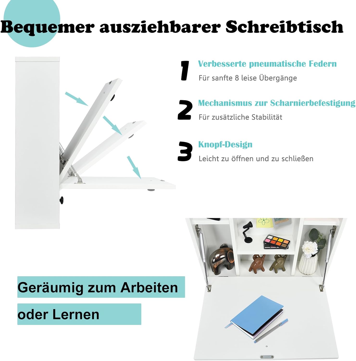 - 【Viel Stauraum für Arbeits- & Schulmaterial】Neben der klappbaren Schreibtischplatte verfügt der multifunktionale Schreibtisch auch über Ablageflächen und eine flache Schublade, um Ihre Arbeitsutensilien griffbereit und ordentlich aufzubewahren.