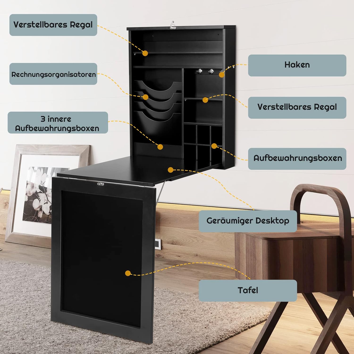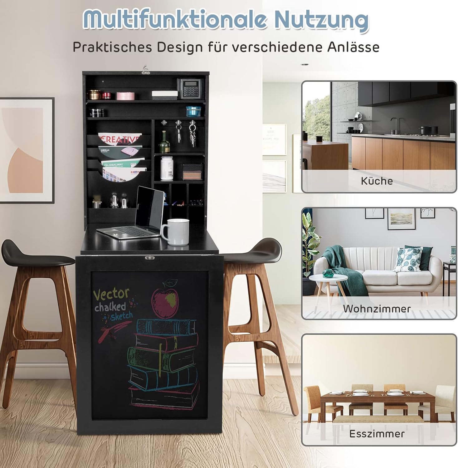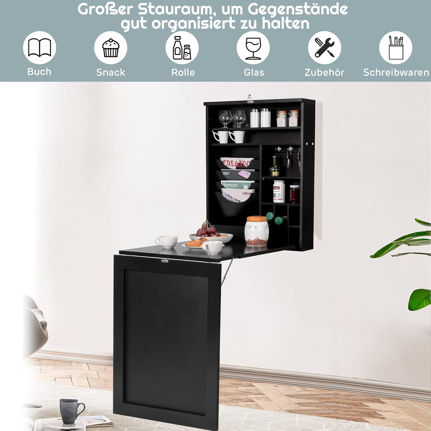 - 【Wandmontage & Kreidetafel】Dank der Wandmontage ist dieser Tisch platzsparend. So wird der vorhandene Platz optimal ausgenutzt. Ausserdem kann er bei Nichtgebrauch leicht zusammengeklappt werden. Zudem kann die Kreidetafel für Notizen verwendet
