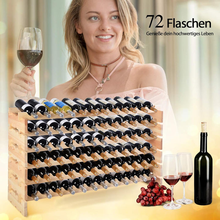 - 🍷【Ausreichender Platz und hohe Stabilität】Das stapelbare Weinregal bietet ausreichenden Platz und platzsparende Weinlagerung. Darauf können Sie bis zu 72 Flaschen legen. Die Holzverbindung gewährleistet Stabilität.