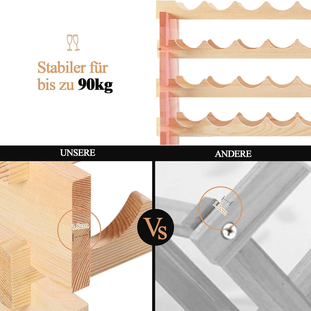 - 🍷【Hochwertiges Material und gute Verarbeitung】Das Weinregal ist aus Kiefernholz, stabil und haltbar. Mit der guten Verarbeitung ist das Flaschenregal robust und langlebig.