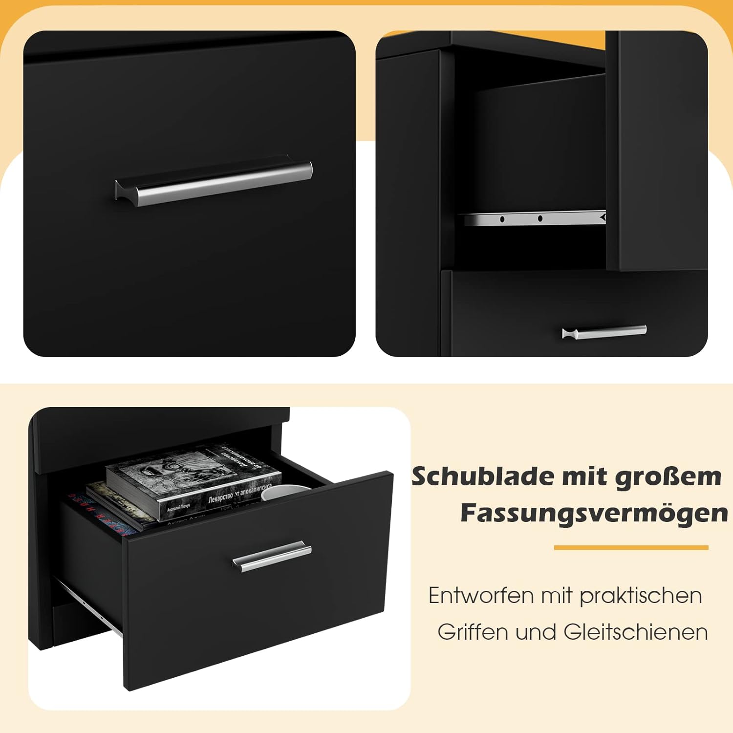 - 【Präzise Verarbeitung】Die Nachtkommode verwendet die Holzspanplatte feiner Oberflächenbehandlung. Damit ist ihre Oberfläche farbecht. Aussdem besitzt sie die hochwertige Laufschiene aus Eisen, damit können Sie die Schublade problemlos