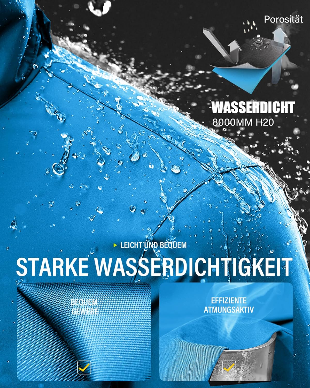 - Material: Es besteht aus Nano-wasserdichtem und umweltfreundlichem Stoff, der sehr regen- und wasserdicht und winddicht ist. Und es hat Lotusblatt wasserdicht, geruchlos, weich, bequem, antioxidativ, nicht entschleimt und so weiter. Diese Eigenschaften