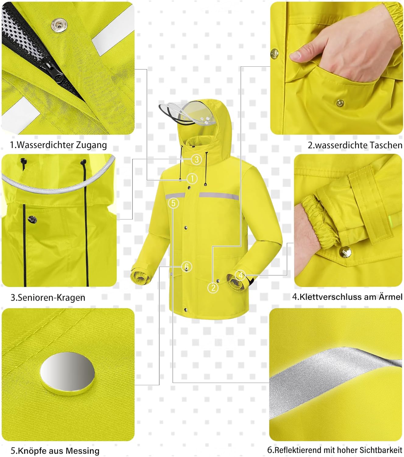Coutyuyi Herren & Damen Regenanzug Reflektierender 100% Wasserdichter Anzug Outdoor Regenmantel Wind
