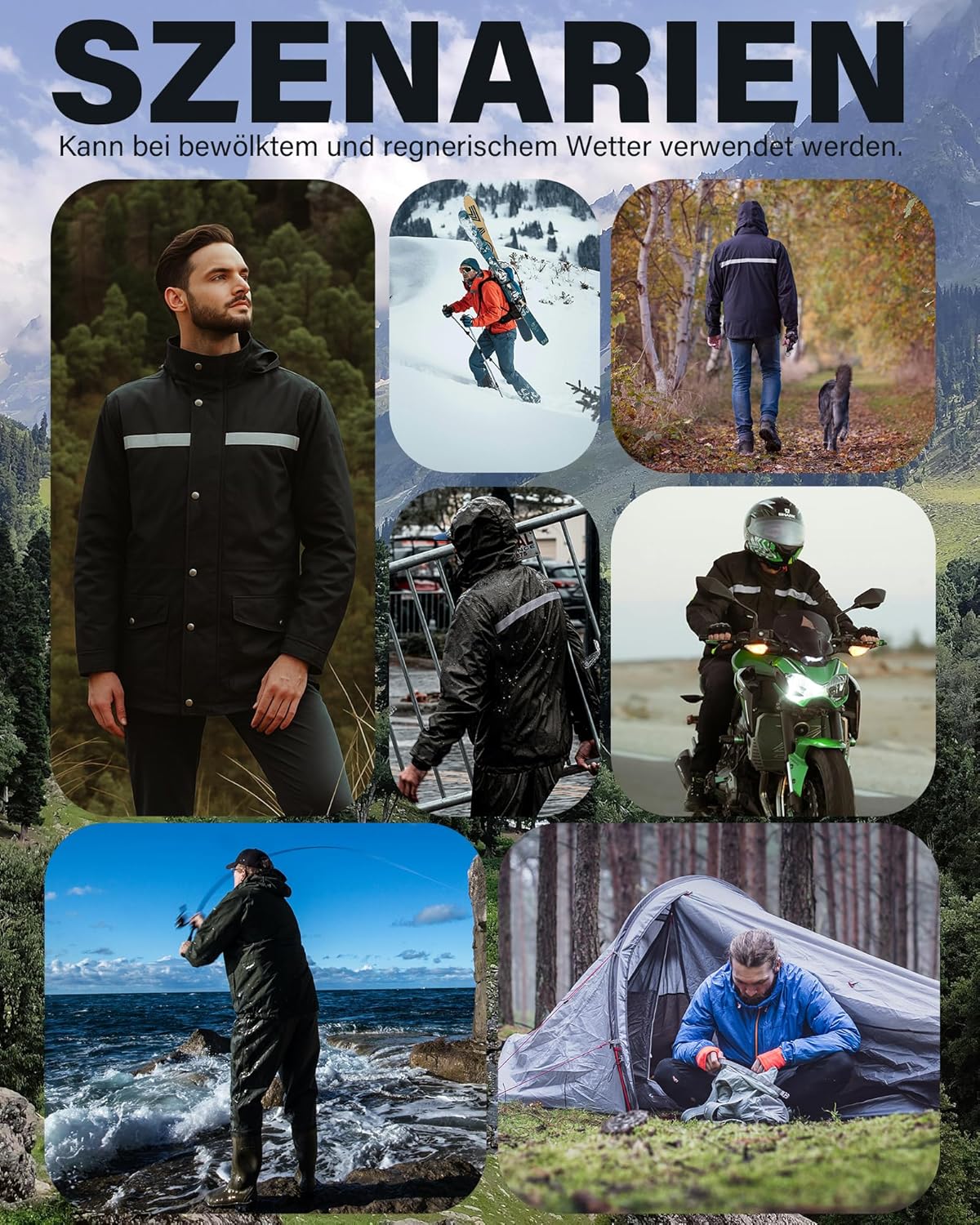 • Wasserdicht: Jede Naht ist mit einer speziellen Wasserdichtigkeit behandelt, um sicherzustellen, dass kein Tropfen an der Naht austritt. Selbst bei besonders starkem Regen braucht man sich keine Sorgen zu machen, nass zu werden. Regenhosen können sogar