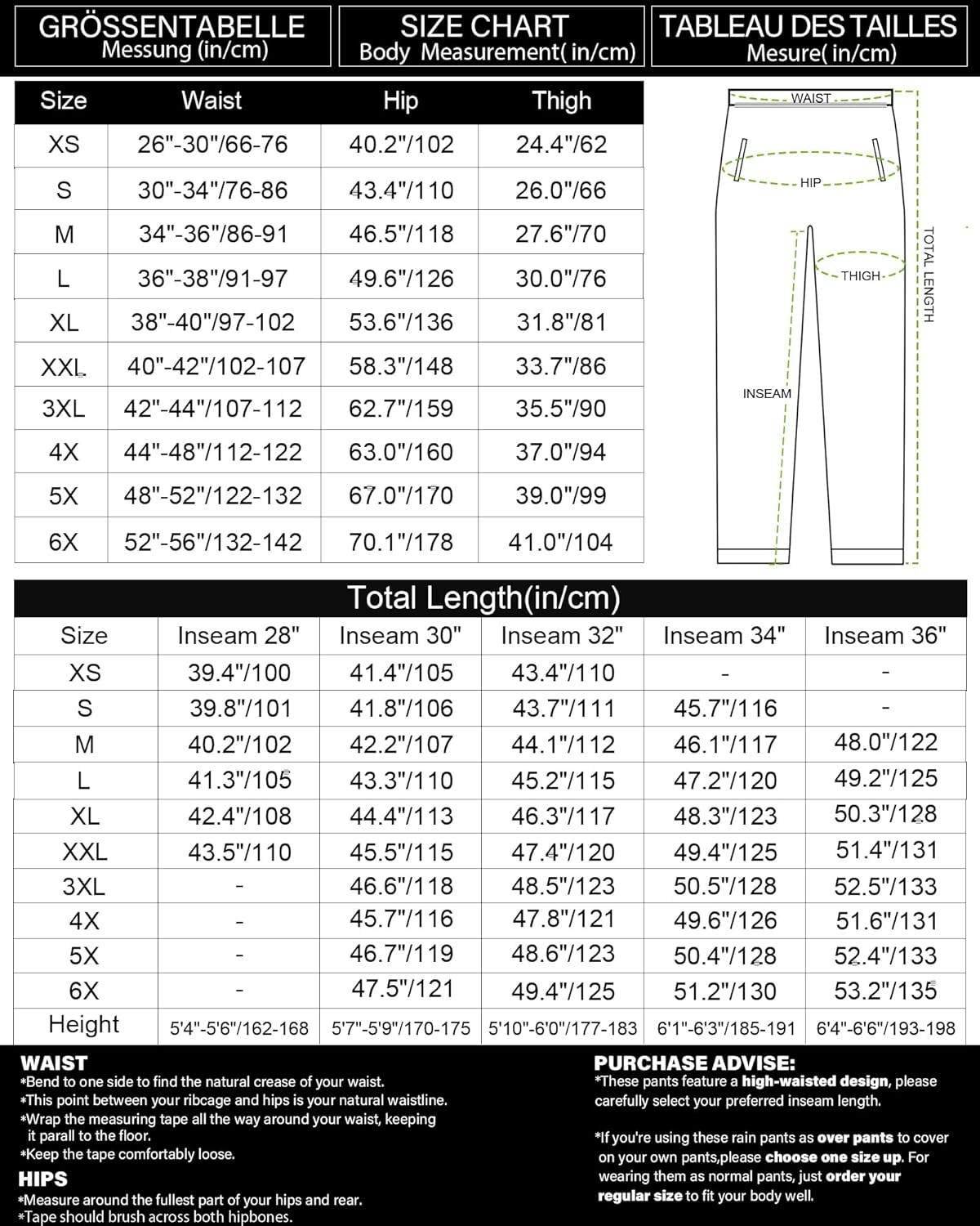 - Leicht und atmungsaktiv:Coutyuyi Regenhose Das Futter besteht aus leichtem Mesh-Gewebe.Verbessert die Atmungsaktivität, indem es die Luft durch das Kleidungsstück zirkulieren lässt.Lange Hose Dünnes und leichtes Material Im Laufe des Gebrauchs