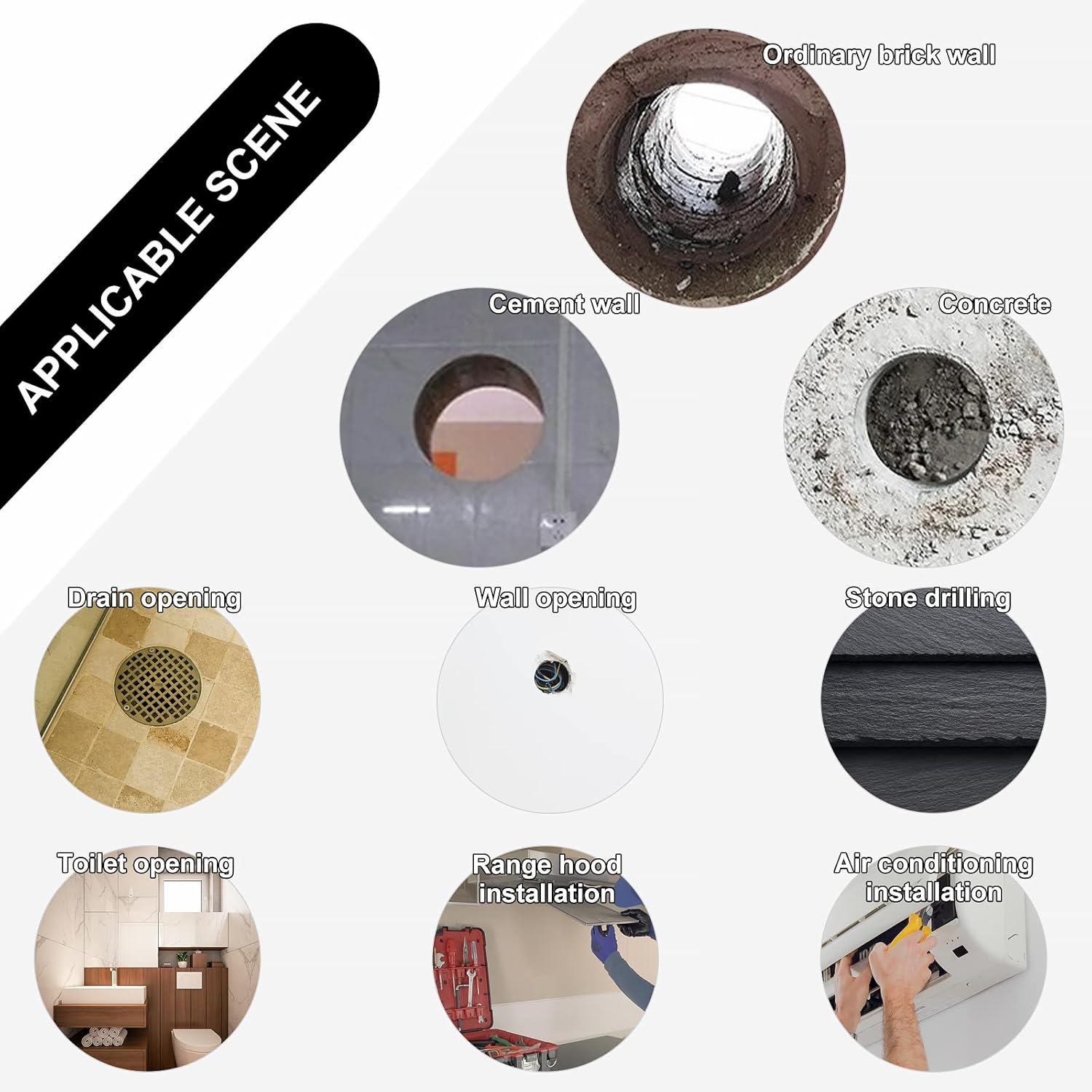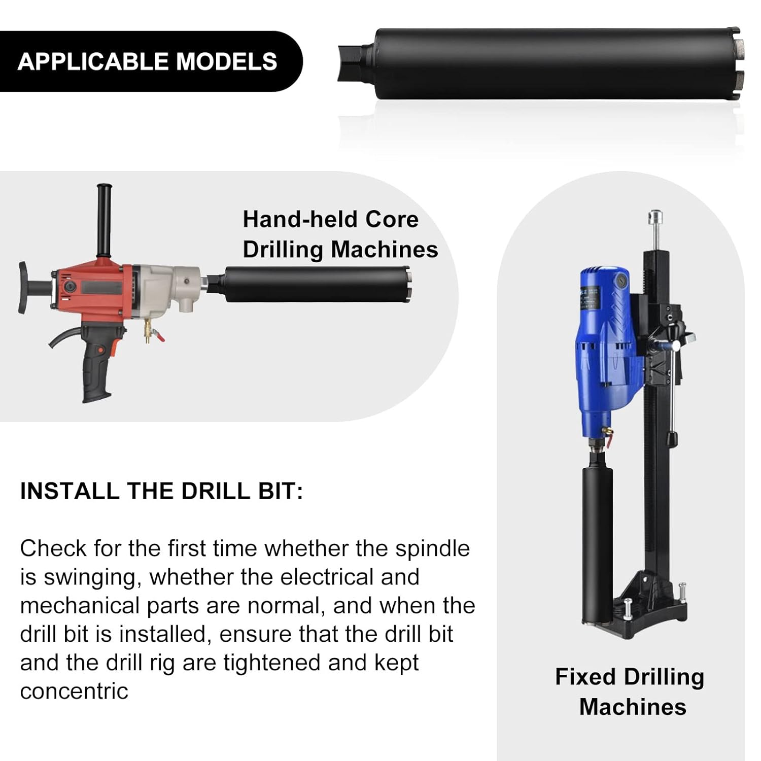 - 【Kompatible Ausrüstung】: Hand-Kernbohrmaschine und Kernbohrgeräte. (Bitte beachten: nicht mit Elektrohammer und Schlagbohrmaschine verwenden)