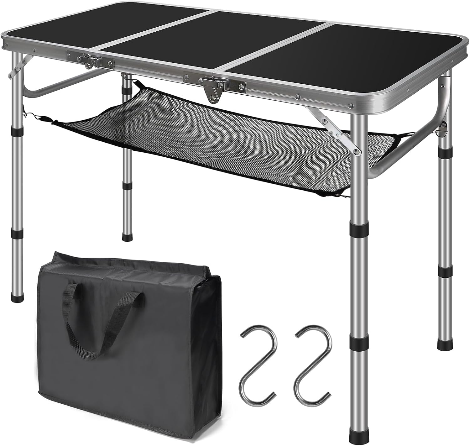 - 【Mit Praktische Netzablage & S-Haken】: Dieser Outdoor-Camping-Tisch wird mit einer zusätzlichen Mesh-Aufbewahrungstasche geliefert, die mehr Platz für Snacks, Küchenutensilien, Bücher und andere Dinge bietet, die Sie brauchen könnten. Ausserdem