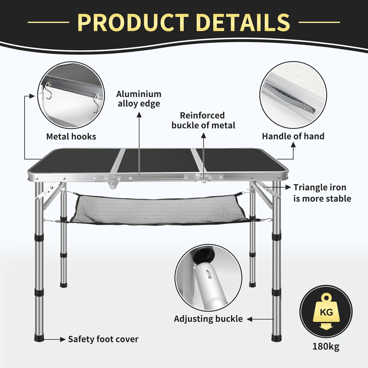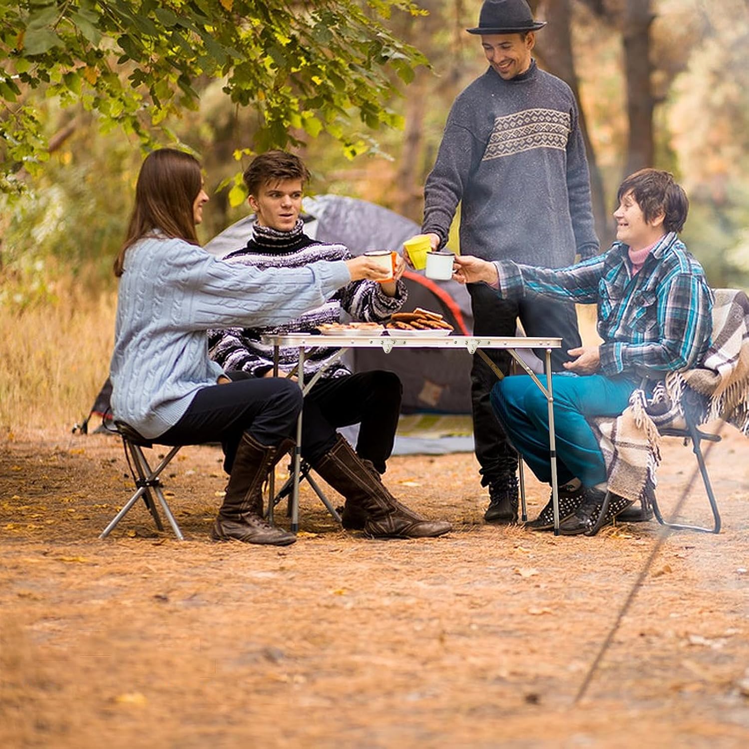 - 【Einfach zu Aufstellen und Zusammenklappen】: Der faltbare Aluminium-Camping-Tisch ist super leicht, sehr einfach auf- und abzubauen. Zusammengeklappt auf die Grösse einer kleinen Aktentasche, mit einem Tragegriff.gute Grösse für Auto-Camping, oder