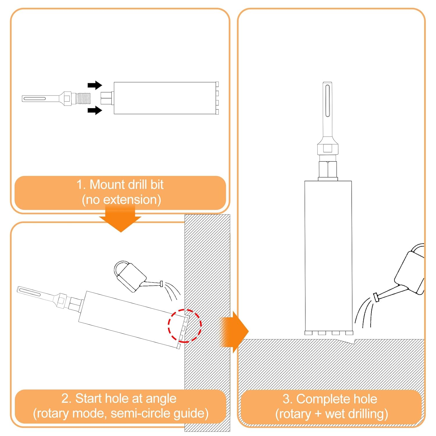 - 【Kompatible Ausrüstung】: Hand-Kernbohrmaschine und Kernbohrgeräte. (Bitte beachten: nicht mit Elektrohammer und Schlagbohrmaschine verwenden)