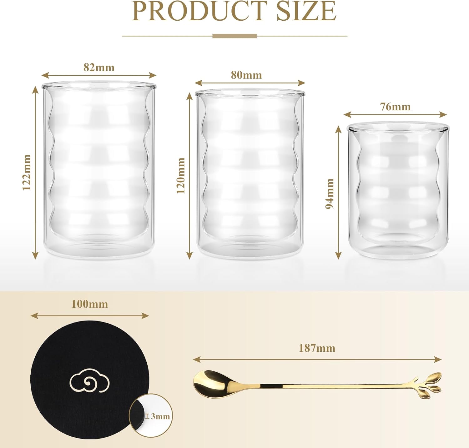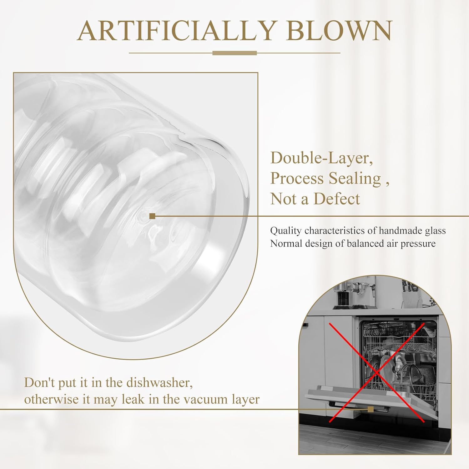 - DOPPELWANDIGE AUSFÜHRUNG --- Das doppelwandige Design dieser kaffeebecher glas nutzt die Doppelschicht-Technologie. Wenn die innere Schicht heiss wird, wird die äussere Schicht nicht heiss, schützt Ihre Finger vor Verbrühungen und hält Ihre