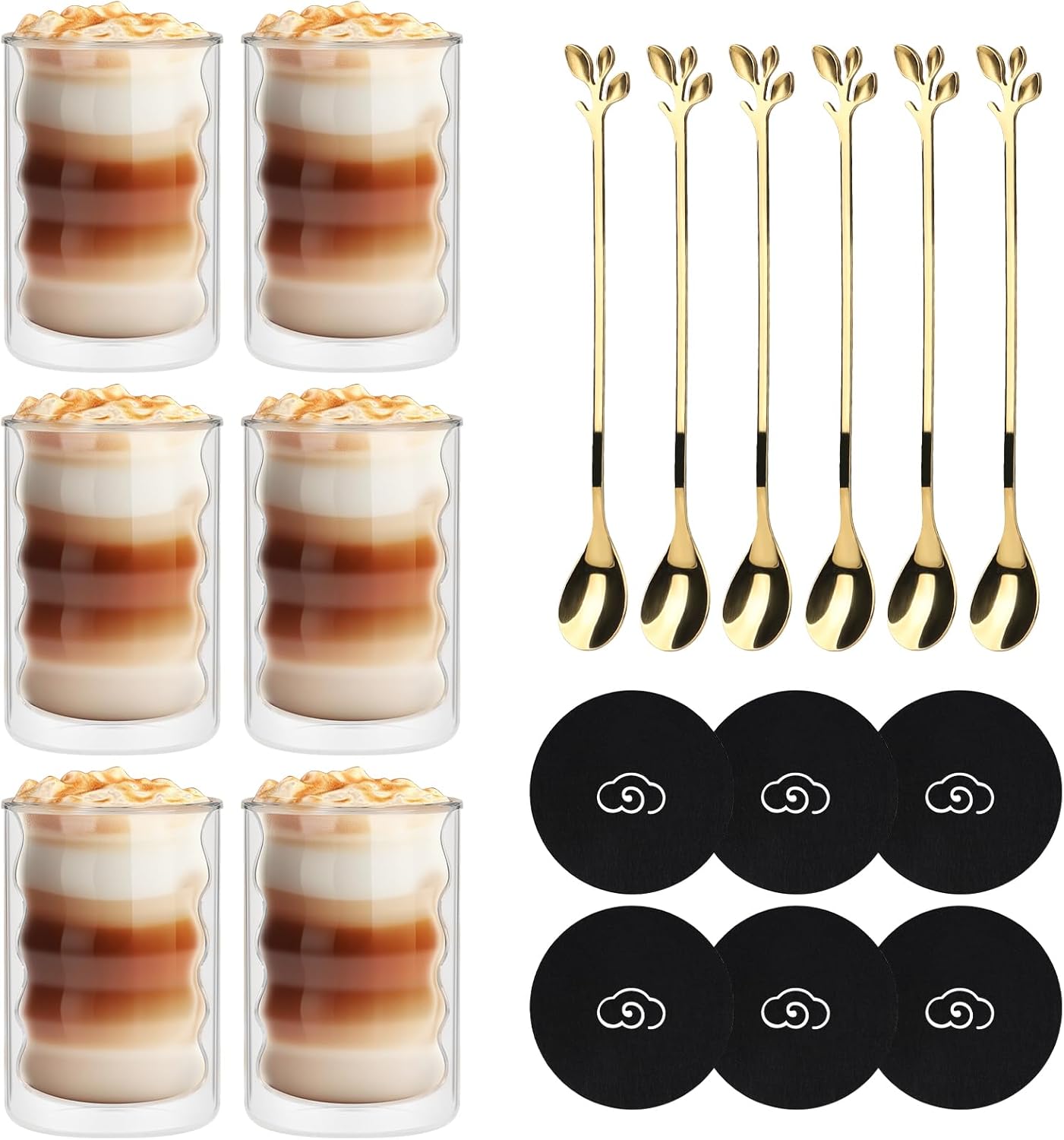 - INHALT --- 6x 350ml Cafe Latte Gläser + 6x Lange Löffel + 6x Filzuntersetzer ( Dicke 0,3mm) . Dank des hitzebeständigen Borosilikatglas sind die Cappuccino Gläser haltbar und langlebig. 【Die Coffee Mugs Double Walled können nicht!!! in der