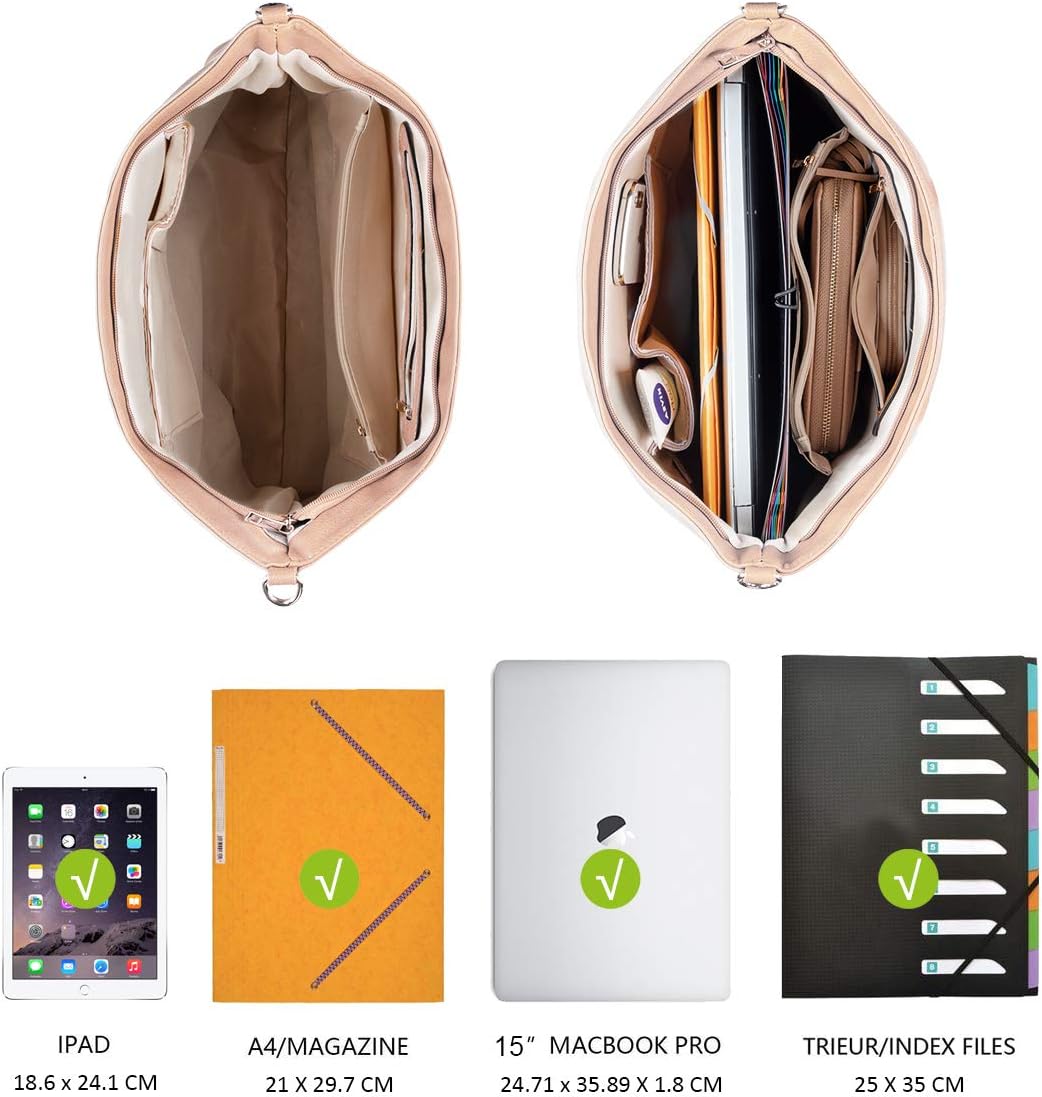 - VERSCHLUSS & DIMENSIONEN: Reissverschluss. Länge 33 x Höhe 28 x Breite 12 cm. Zentrales Fach mit grosser Kapazität für A4-Dokumente, Ordnungsmappe, und 13- oder 15-Zoll-Laptops. Ordner passen nicht hinein.