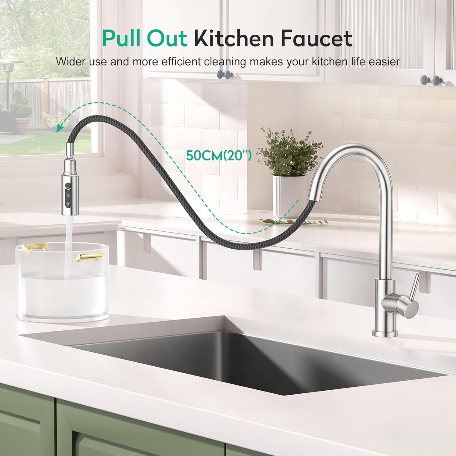 - MATERIAL: Die 3 wege Armatur Küche ist aus 304 Edelstahl mit gebürstetem Finish gefertigt, das Fingerabdrücken, Korrosion und Rost widersteht, während der ABS-Kunststoff-Brausekopf, die hochwertige Keramikkartusche und das KTW-zertifizierte