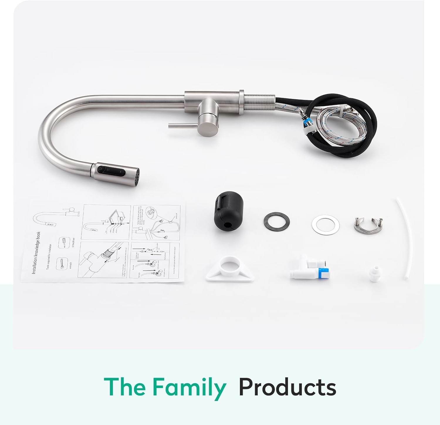 - EINFACHE INSTALLATION: Sie erhalten einen Trinkwasserhahn mit Brause, Installationsanleitung, zwei G3/8 Anschlussschläuche und einen G1/4 Trinkwasserschlauch, der direkt an die Wasserleitung verbanden werden kann, noch ein G1/4 auf G3/8 Adapter. Diese