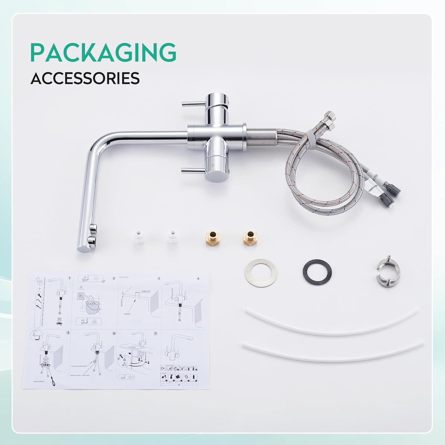 - 4 WEGE ARMATUR : Kombiniert eine Mischbatterie mit einem Hahn für Trinkwasser und Sodawasser. Die Armatur liefert Heisswasser, Kaltwasser, Trinkwasser und Soda. Er spart Geld und Platz und ist praktisch für den täglichen Gebrauch.