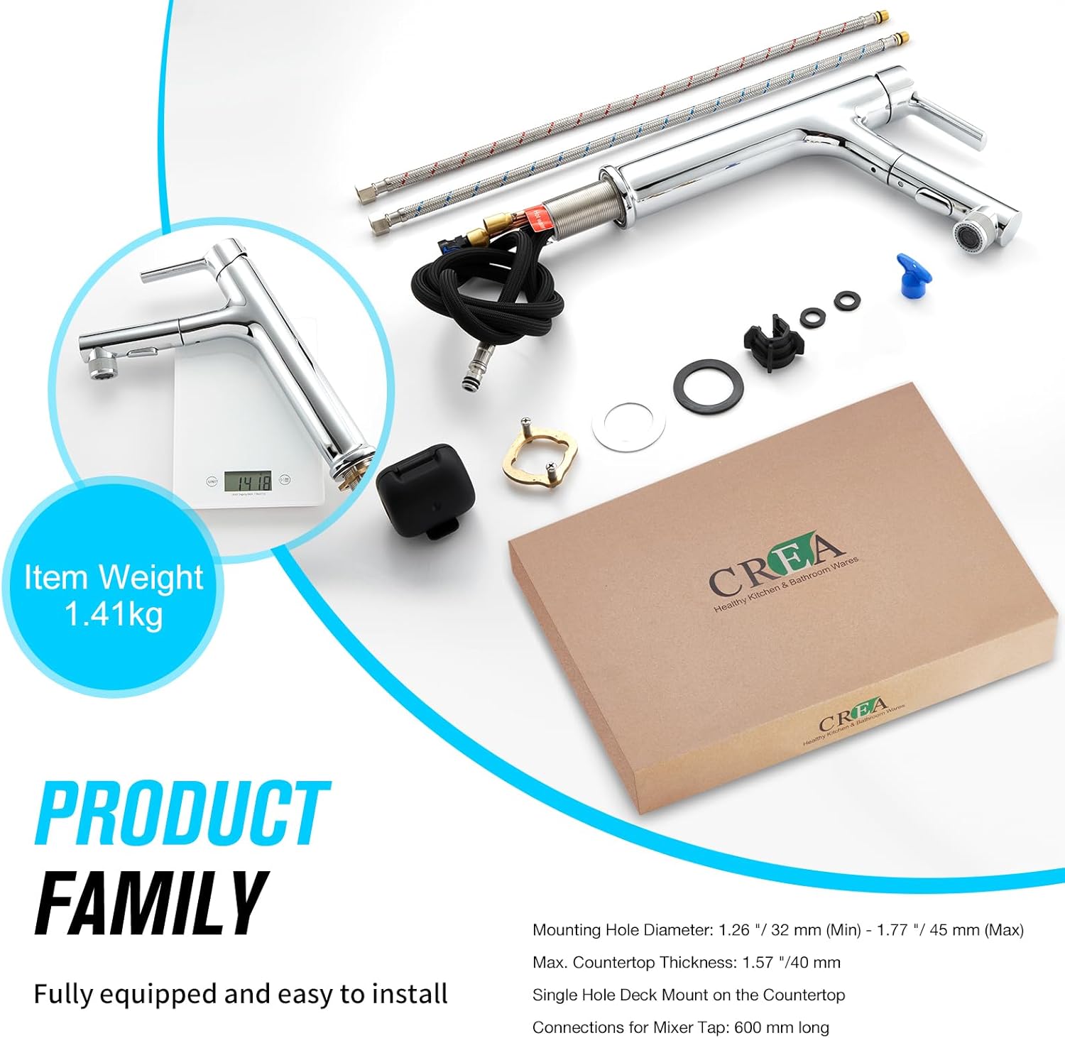 - [Praktisches Upgrade für Ihr Badezimmer] Diese Waschtischarmatur ist die Kombination für rundum unbeschwertes Waschen im unserem Design. Mit der können Sie leicht jede Ecke des Waschtisches abwaschen und problemlos Ihre Haare auf dem Waschbecken