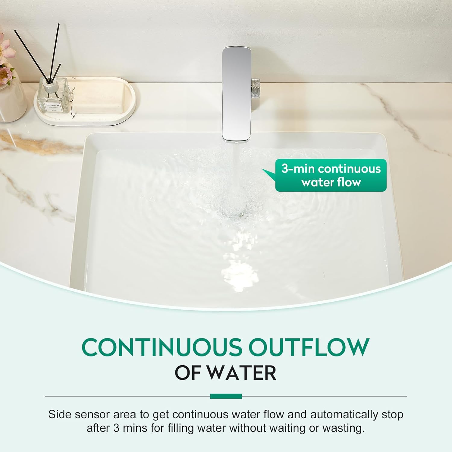 - Seitensensor für kontinuierlichen Wasserfluss: Das Design des seitlichen Sensors ist einzigartig, sobald er aktiviert ist, kann die Waschtischarmatur Bad ohne jegliche Bedienung kontinuierlich Wasser für 3 Minuten liefern. Wenn Sie den Wasseraustritt