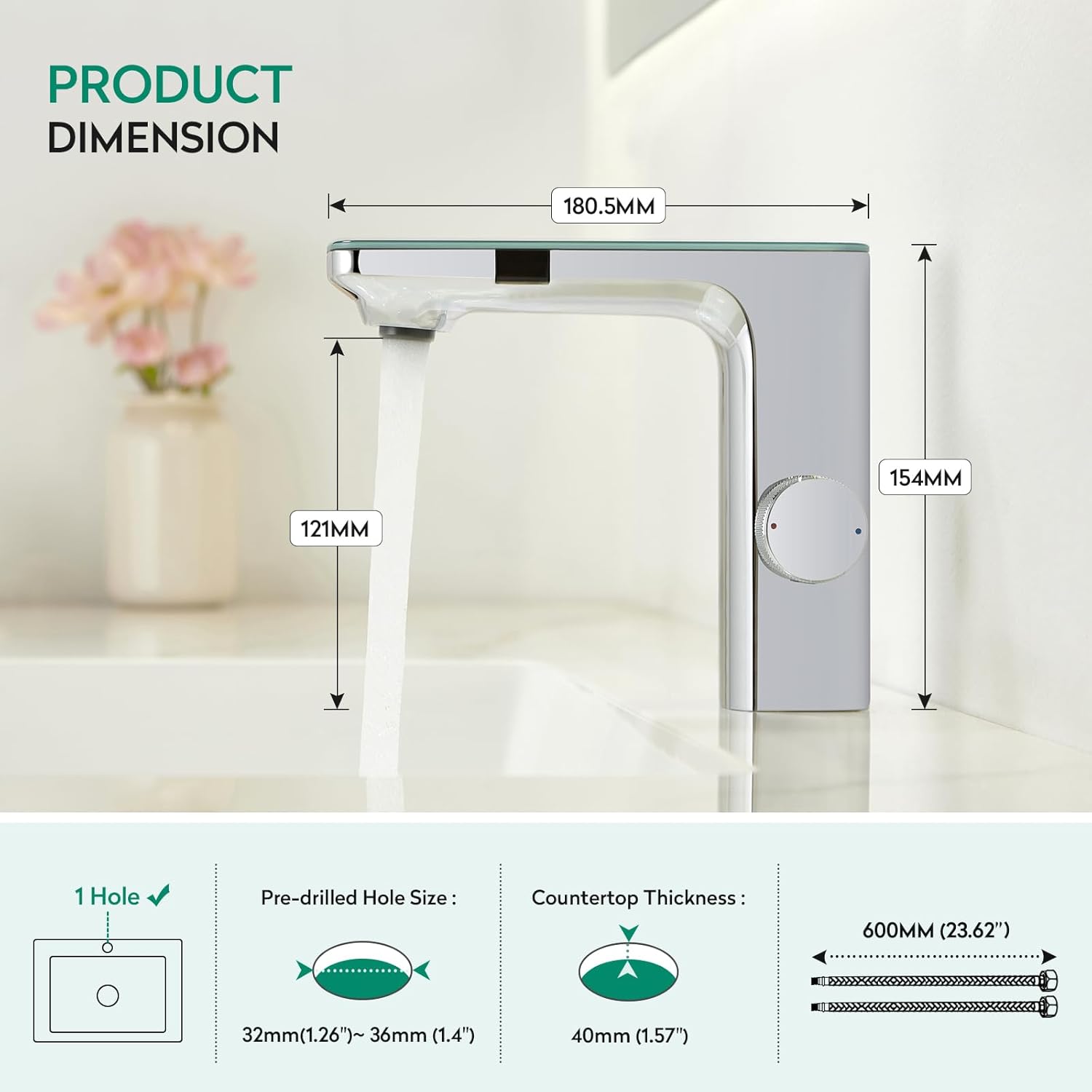 - Heisses und kaltes Wasser: Dieser Mischbatterie Bad Infrarot-Sensor hat eine Mini-Griff an der Seite zum Umschalten zwischen heissem und kaltem Wasser. Sie können die Wassertemperatur mit einer Hand leicht einstellen. Ob kaltes Wasser zum Reinigen oder