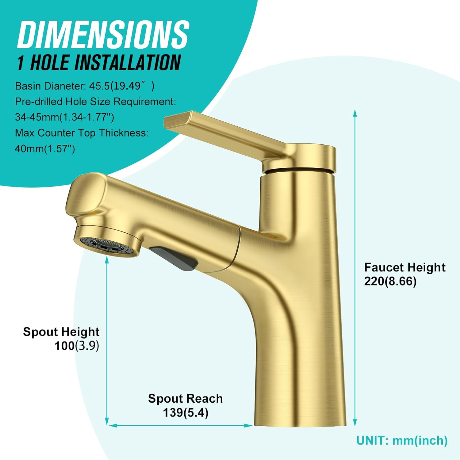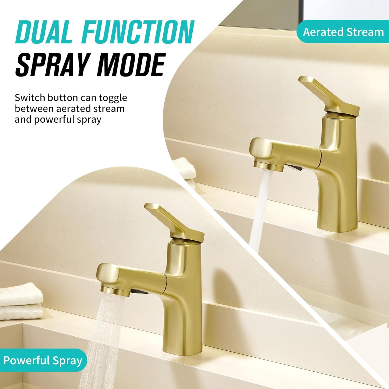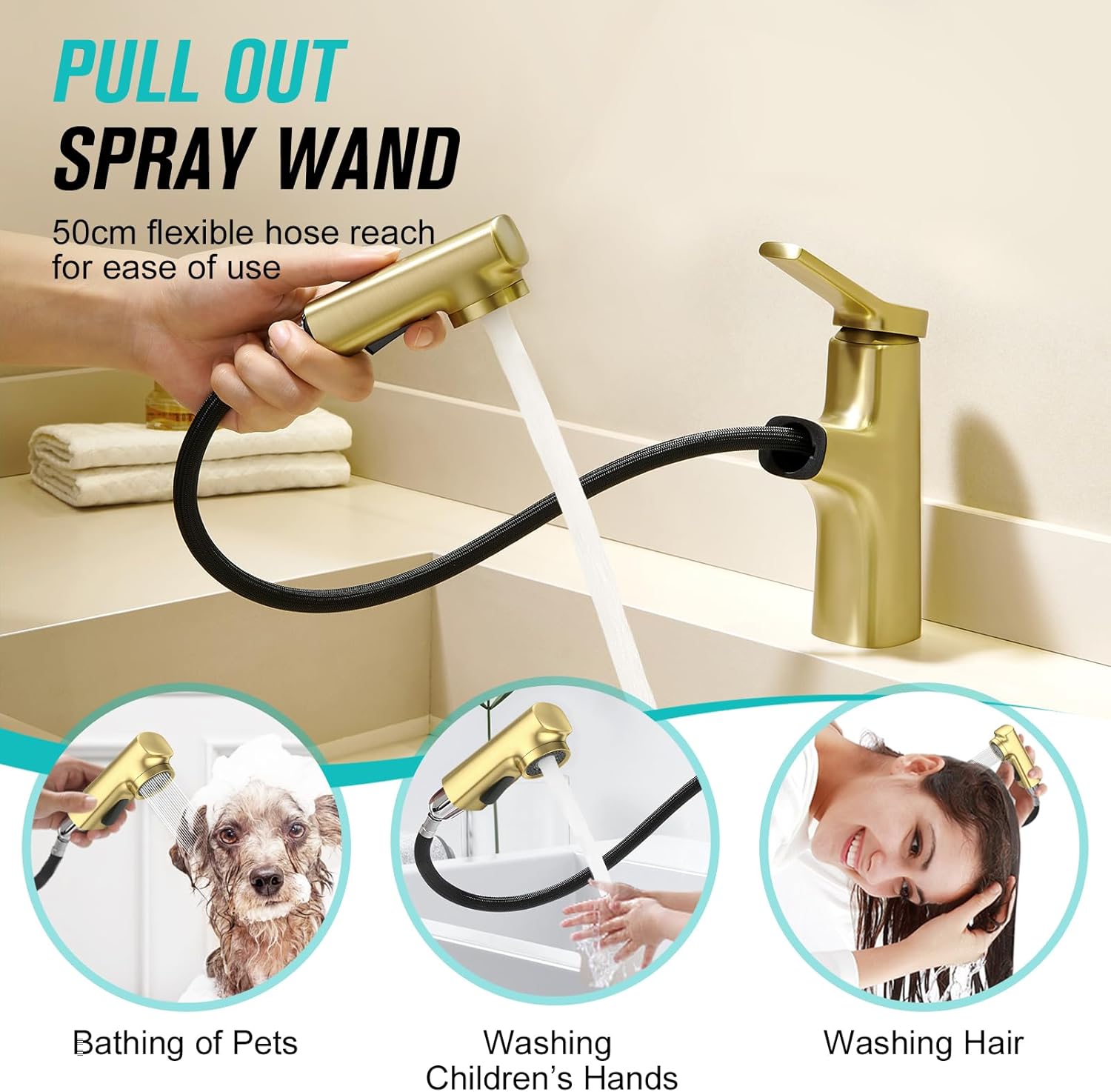• [Praktisches Upgrade für Ihr Badezimmer] Diese Waschtischarmatur mit herausziehbarer 2-Funktion-Brause ist die Kombination für rundum unbeschwertes Waschen im unserem Design. Mit der können Sie leicht jede Ecke des Waschtisches abwaschen und