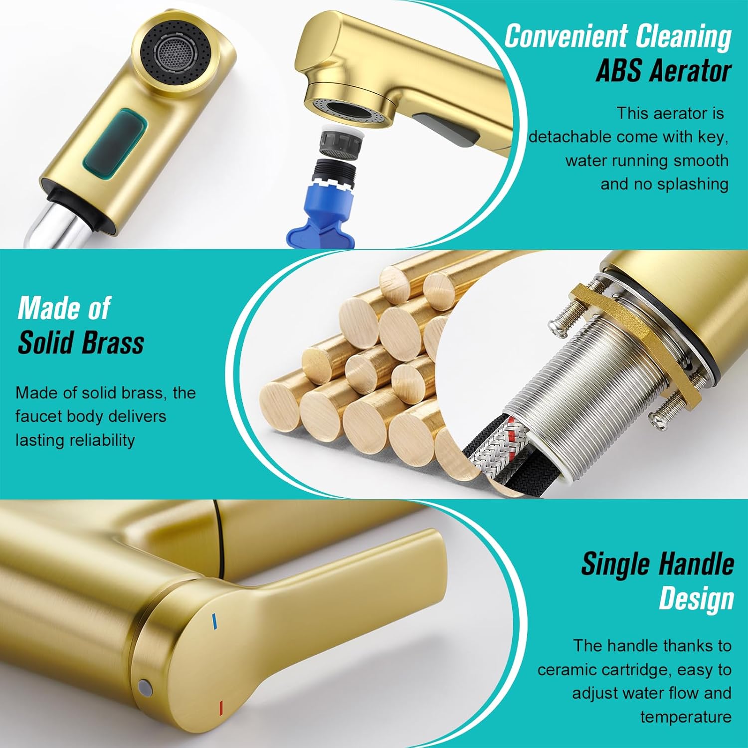 • [Elegantes Aussehen und hochwertige Verarbeitung] Das ganzen Einhebelmischer Wasserhahn besteht aus Bleifreie Messinggehäuse. Das Gewicht von 1,198 kg ist schwerer als die meisten Wasserhähne auf dem Markt. Die elektrophorese Oberfläche in