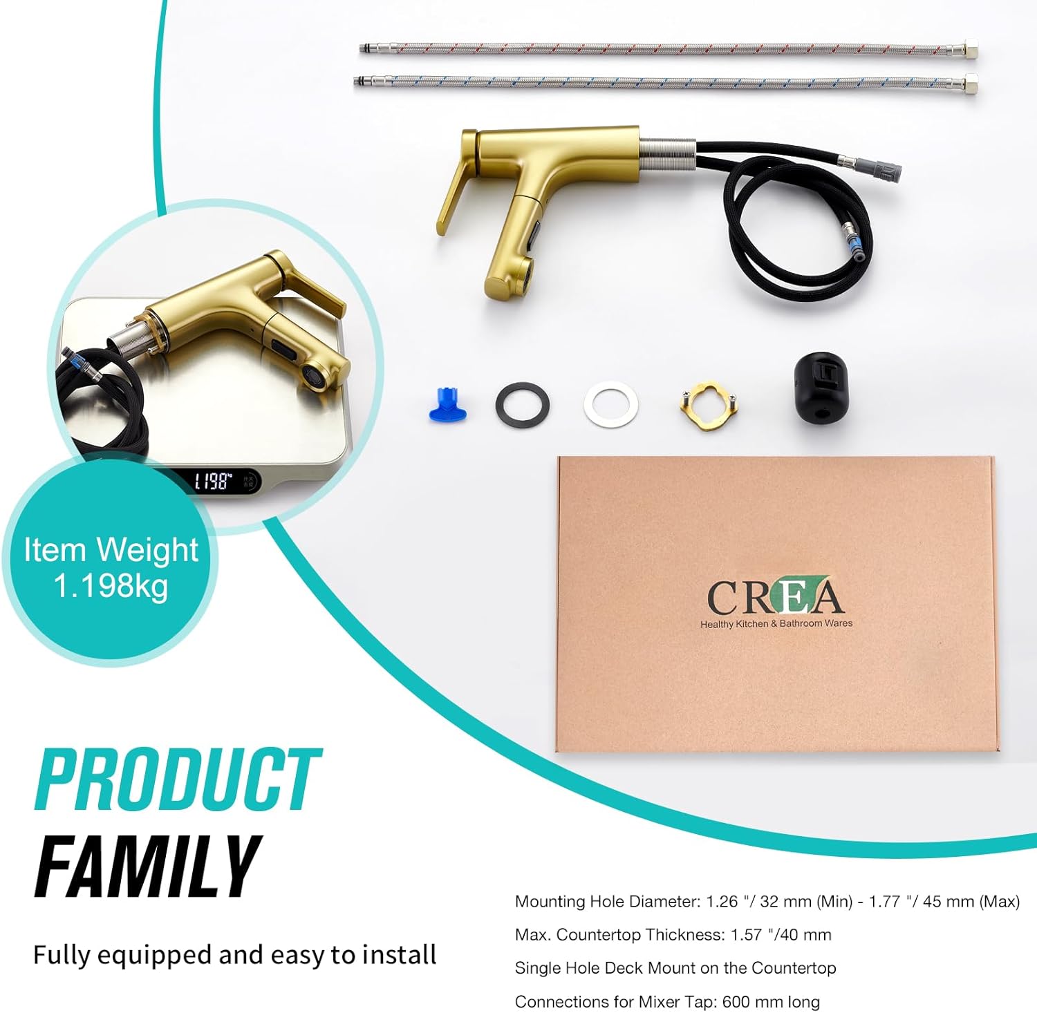 CREA Modern Waschtischarmatur Badezimmer mit 2 Wasserstrahlarten Brause ausziehbar, Einhebelmischer