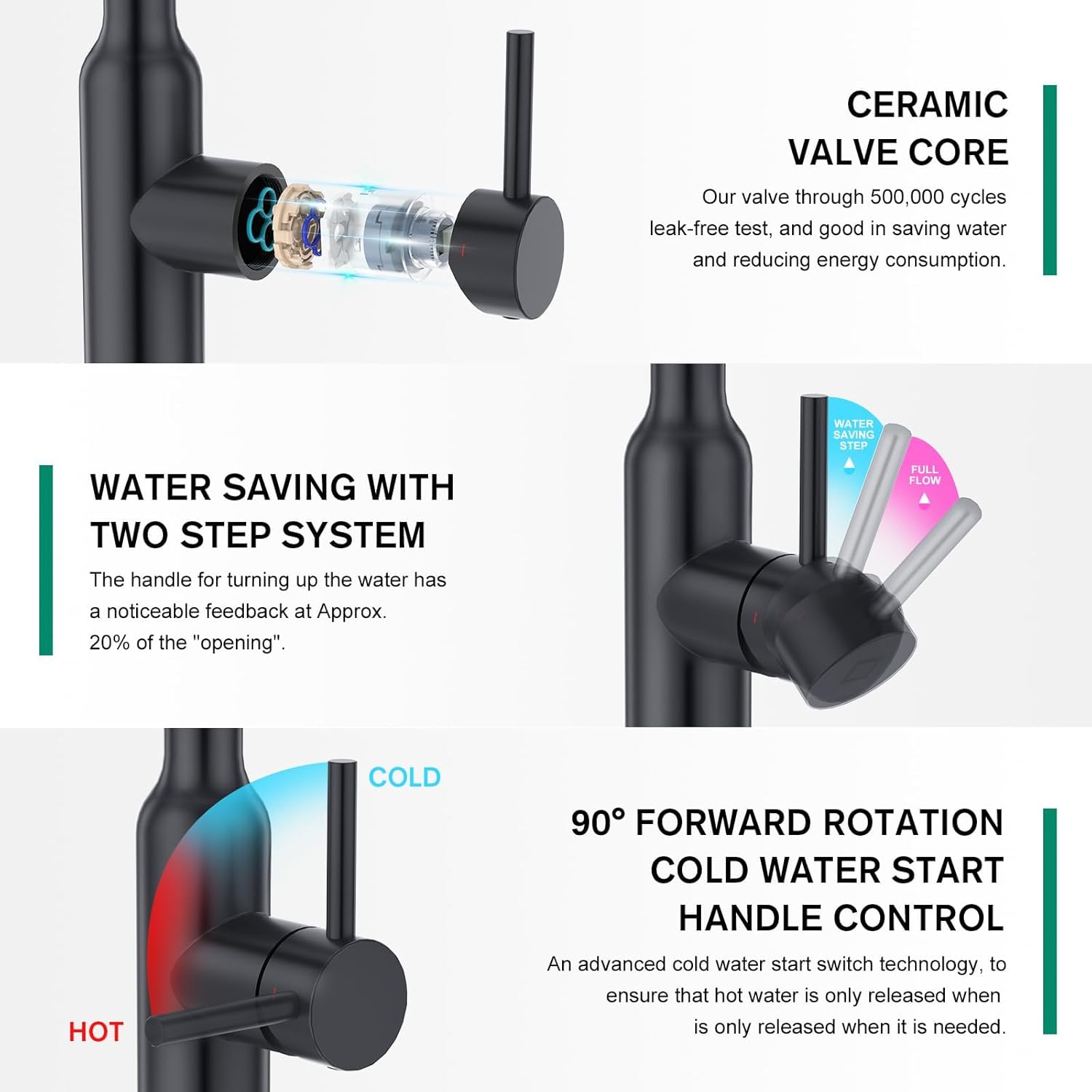 - ▶ Leichte Bedienung: Einhand-Design zur einfachen Steuerung der Wassertemperatur und des Durchflussvolumens. Hoher Lichtbogen 360-Grad-Schwenkauslauf lässt sich sehr leicht vollem Waschbereich zu befüllen und zu spülen . Das aktualisierte