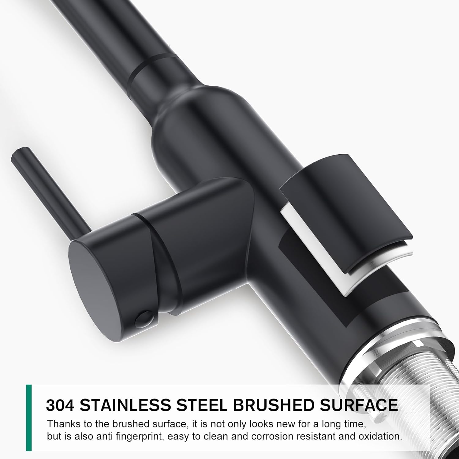 - ▶ Material: Diese Küchenmischarmatur besteht aus hochwertigem und extrem korrosionsbeständigem Edelstahl, der Sie vor Bleiverunreinigungen im Trinkwasser schützen, die Abdichtung verbessern. Und oberflächenbehandelten Edelstahl aus gebürstetem