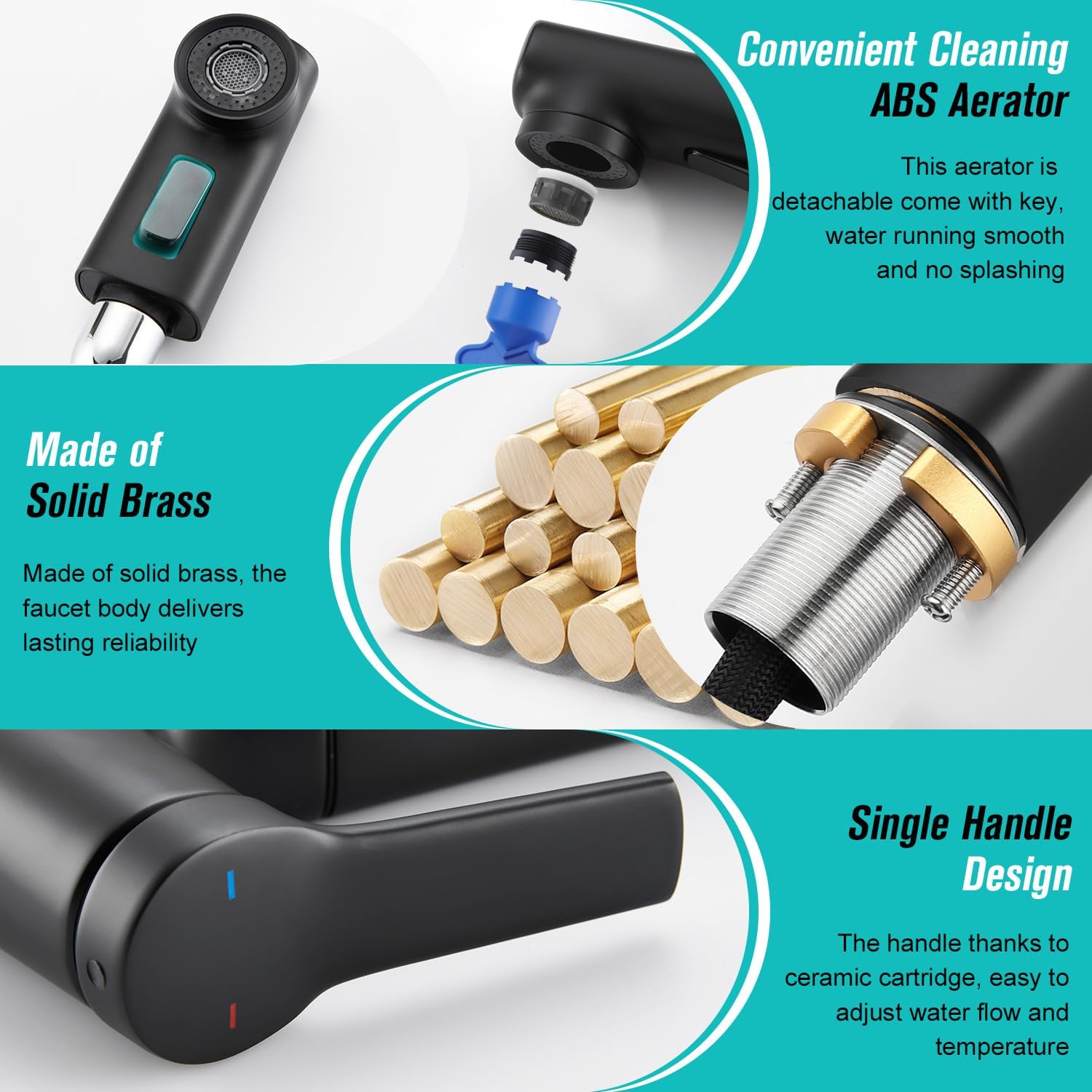 - [Elegantes Aussehen und hochwertige Verarbeitung] Die ganzen Badarmatur besteht aus Bleifreie Messinggehäuse. Das Gewicht von 1,18 kg ist schwerer als die meisten Wasserhähne auf dem Markt. Die elektrophorese schwarze mit verchromte Oberfläche sieht