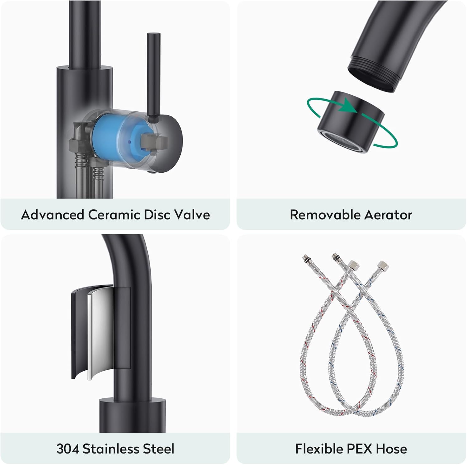 • WASSEREINSPARUNG: Wegen schweizer Neoperl Waben Belüfter kann die Wasserhahn für Bad Schwarz mehr als 30% Wasser einsparen. Der ABS Belüfter ist abnehmbarer und um auszutauschen.