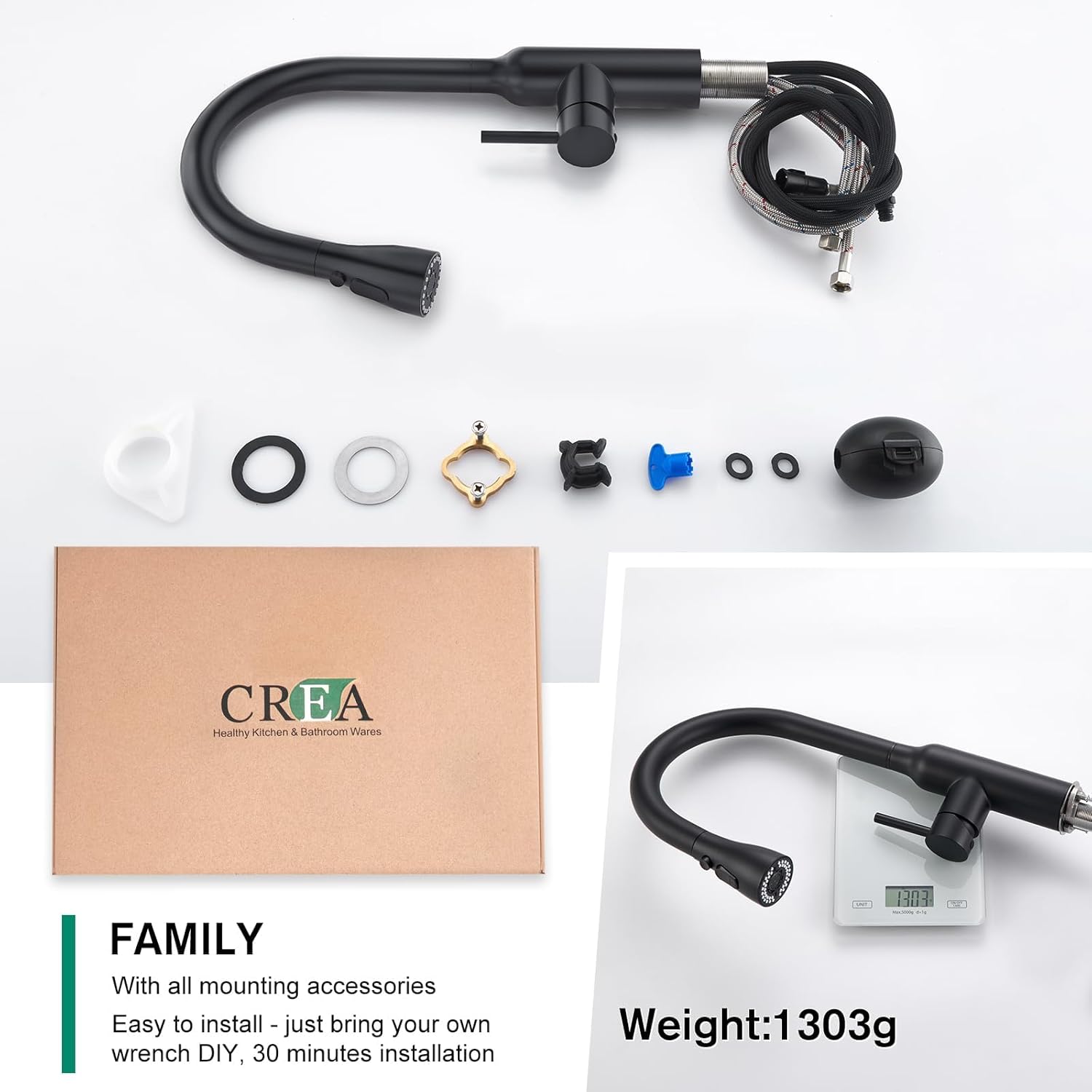 - ▶ Einfache Montage: Mit 2 Wasserleitungen, vollständiges Montageset und ausführlicher Anleitung machen die Installation zum Kinderspiel. Patentierter Steckverbinder, die Quick Connect-Installation macht die Installation von Wasserhähnen schnell und