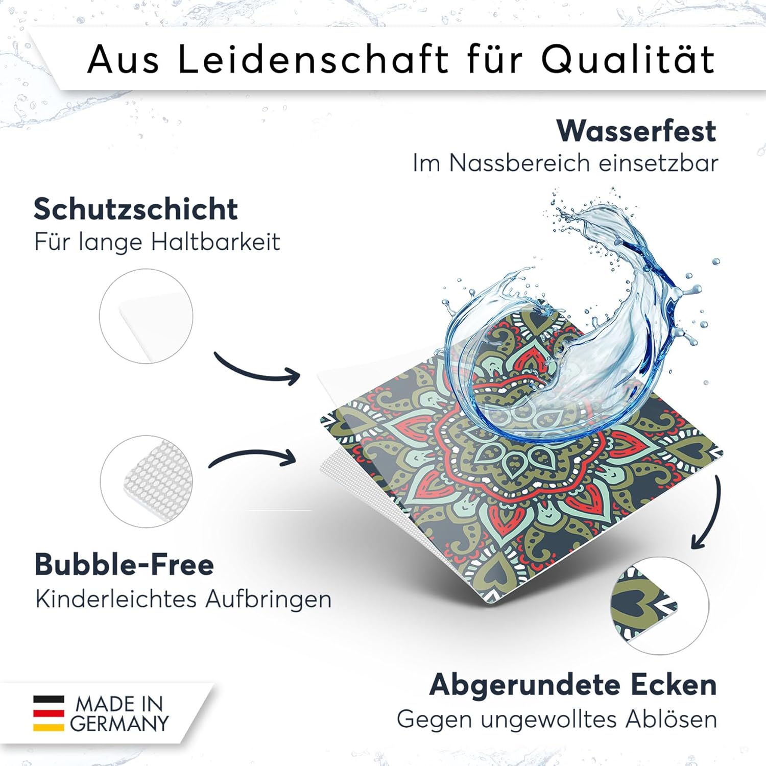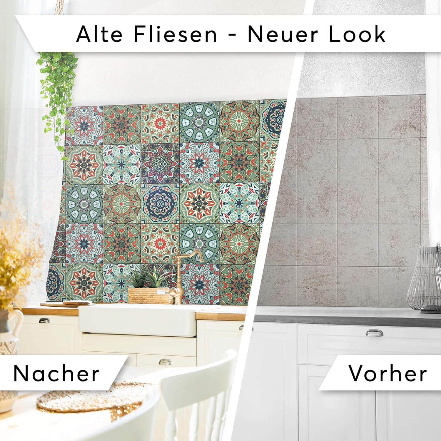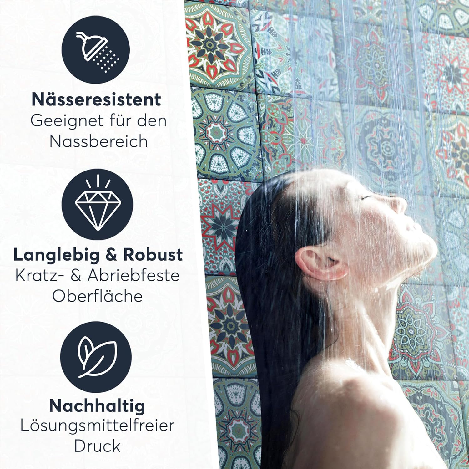 • HOCHWERTIGE VERARBEITUNG - Passgenauer Zuschnitt, hochwertige Druckverfahren und beste Materialien zeichnen unsere Fliesensticker aus. 100% Zufriedenheitsgarantie mit unseren Klebefliesen!