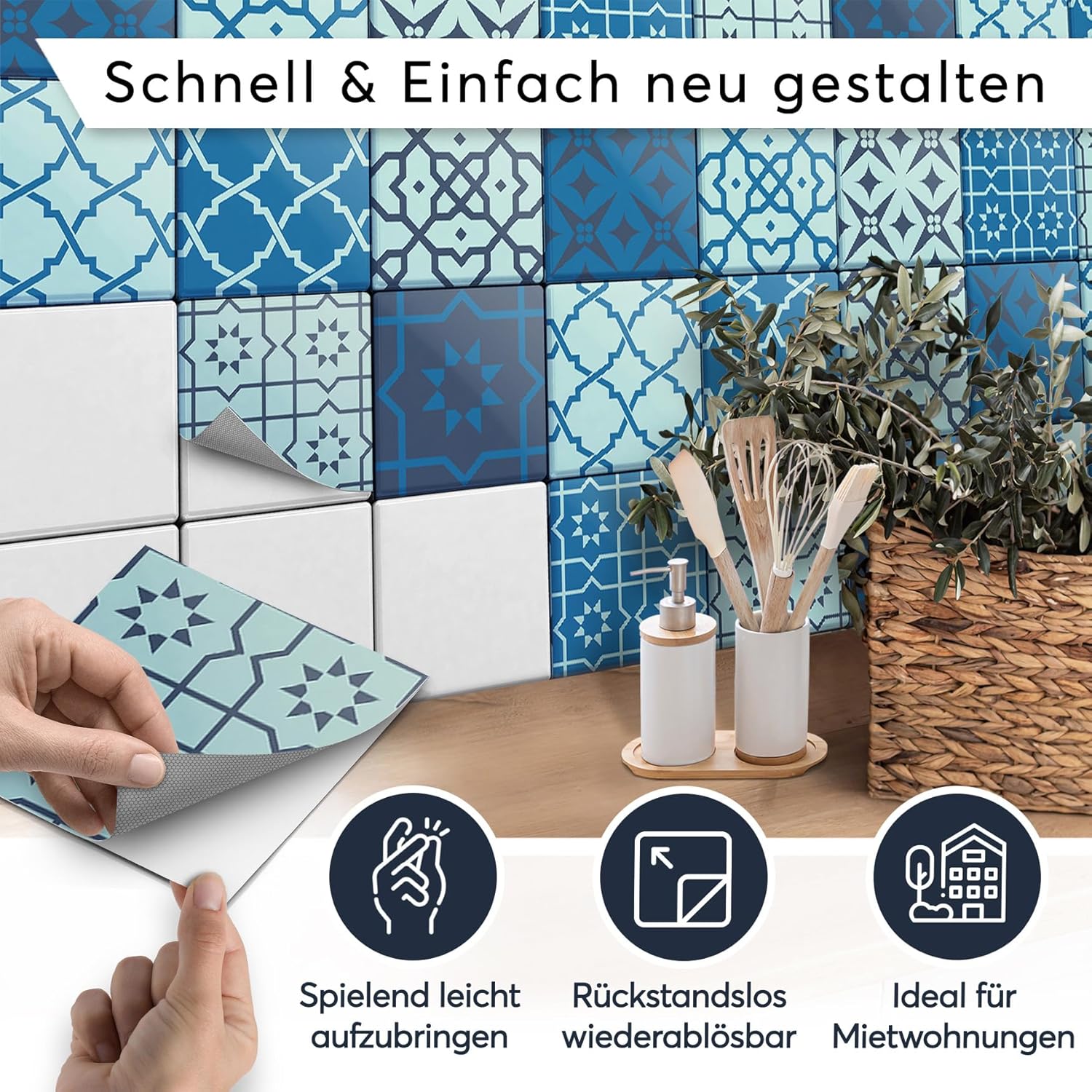 • LANGLEBIG UND ROBUST - Nahezu unbegrenzt haltbar, Wasserfest, Kratzfest, Putzmittelbeständig, Hitzebeständig bis 80 °C, kein Ausbleichen! Jederzeit wiederablösbar - Ideal für Mietwohnungen!