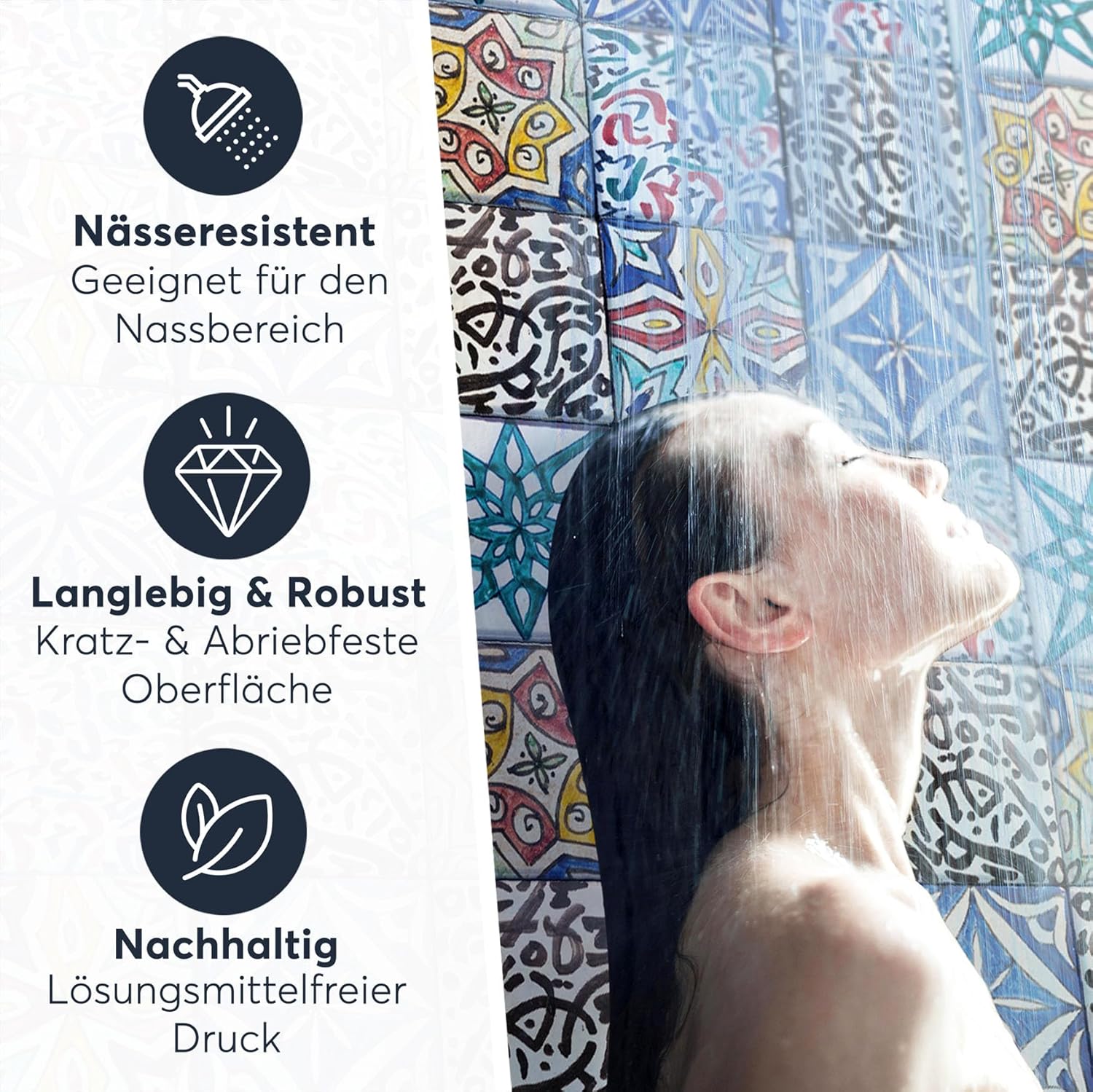 • HOCHWERTIGE VERARBEITUNG - Passgenauer Zuschnitt, hochwertige Druckverfahren und beste Materialien zeichnen unsere Fliesensticker aus. 100% Zufriedenheitsgarantie mit unseren Klebefliesen!