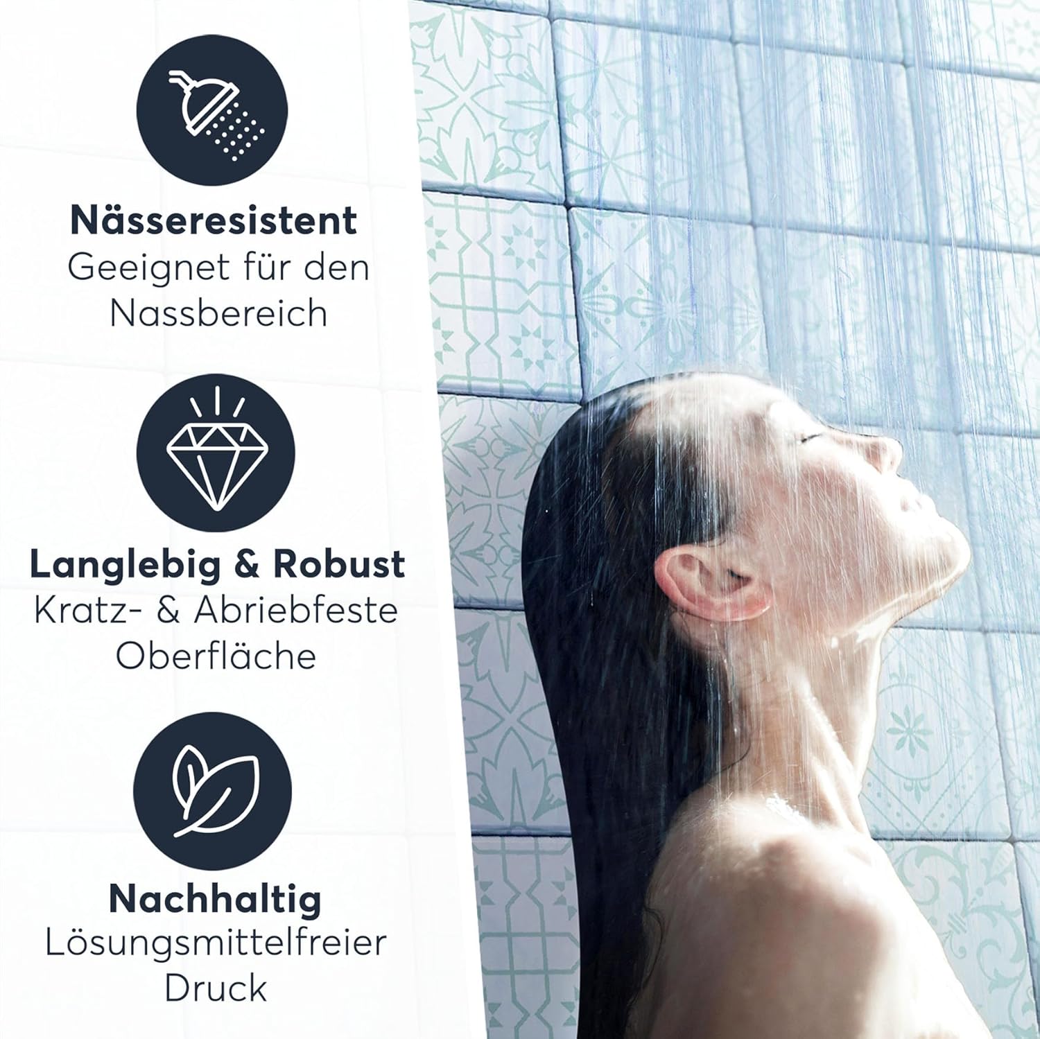 • HOCHWERTIGE VERARBEITUNG - Passgenauer Zuschnitt, hochwertige Druckverfahren und beste Materialien zeichnen unsere Fliesensticker aus. 100% Zufriedenheitsgarantie mit unseren Klebefliesen!