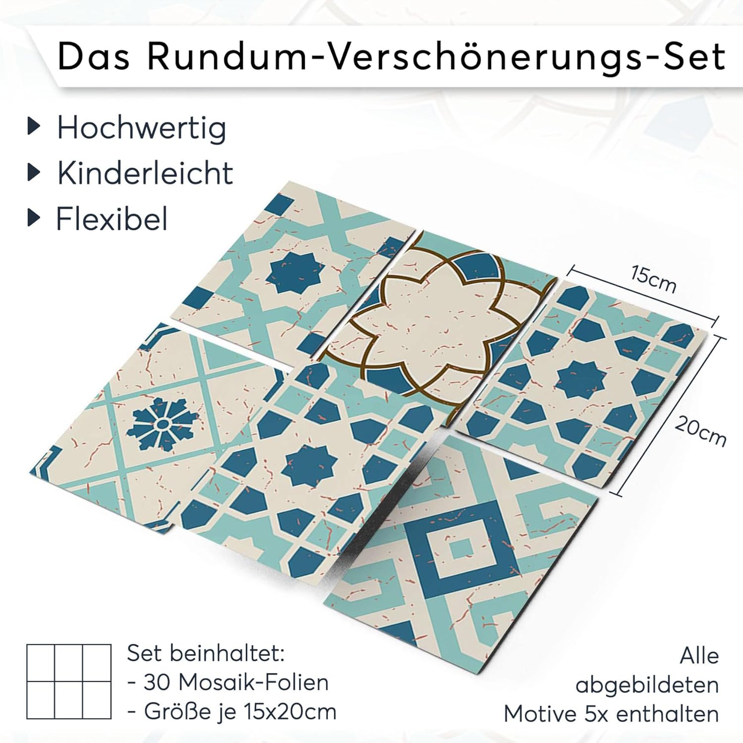 • QUALITÄT MADE IN GERMANY - [SET MIT 30 FLIESENFOLIEN JE 15x20 CM] - Original CREATISTO Fliesenaufkleber, entwickelt für Fliesen in Küche, Bad und WC. In Deutschland gefertigt mit hochwertigen und umweltfreundlichen Materialien!