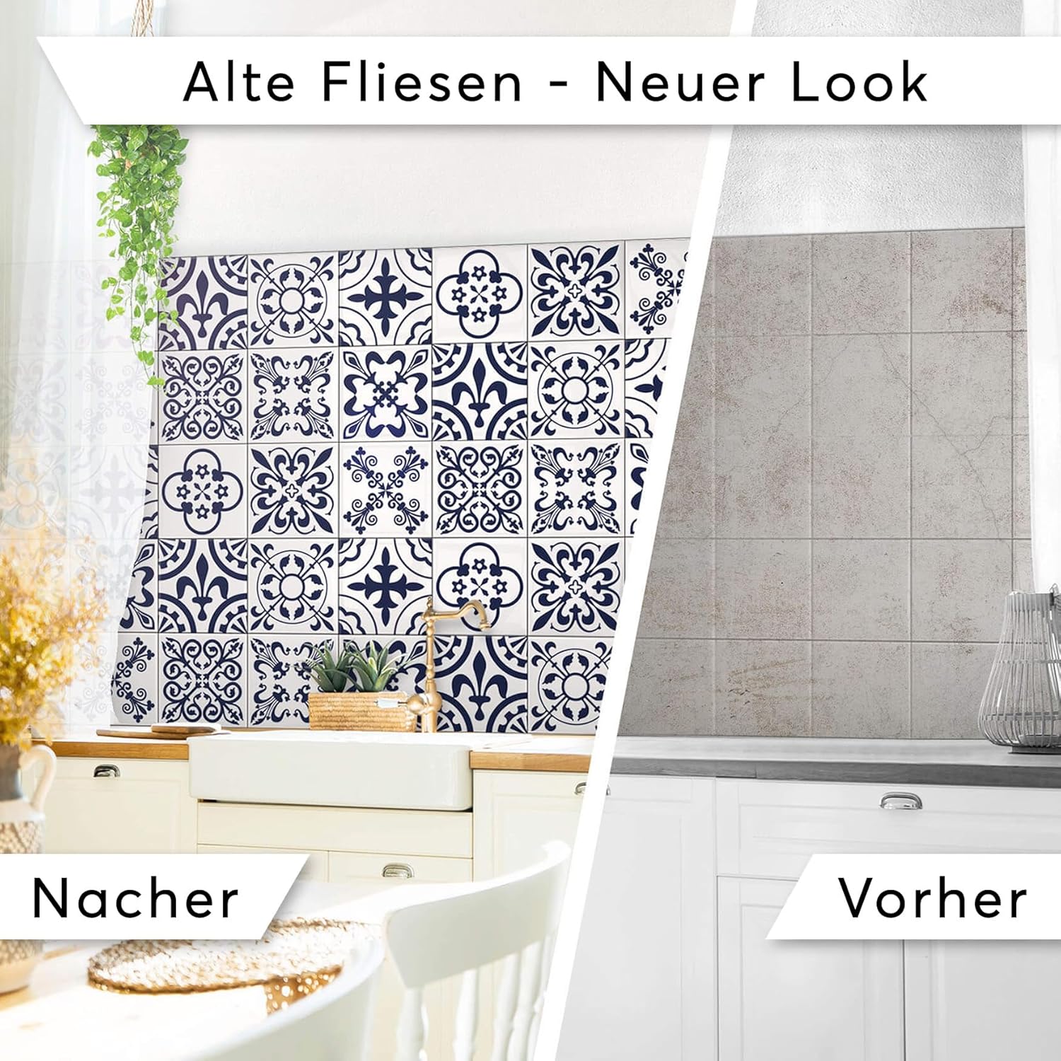 • HOCHWERTIGE VERARBEITUNG - Passgenauer Zuschnitt, hochwertige Druckverfahren und beste Materialien zeichnen unsere Fliesensticker aus. 100% Zufriedenheitsgarantie mit unseren Klebefliesen!