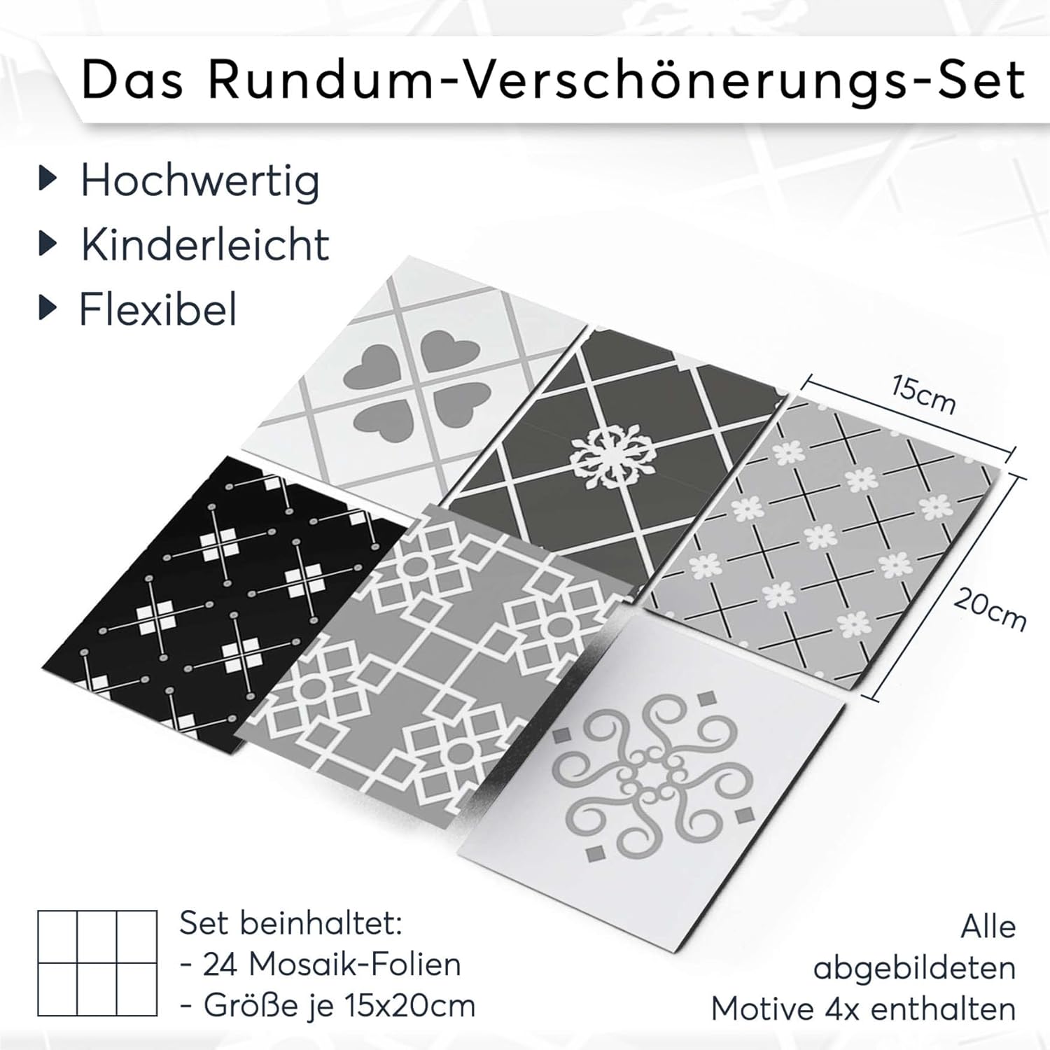 • QUALITÄT MADE IN GERMANY - [SET MIT 24 FLIESENFOLIEN JE 15x20 CM] - Original CREATISTO Fliesenaufkleber, entwickelt für Fliesen in Küche, Bad und WC. In Deutschland gefertigt mit hochwertigen und umweltfreundlichen Materialien!