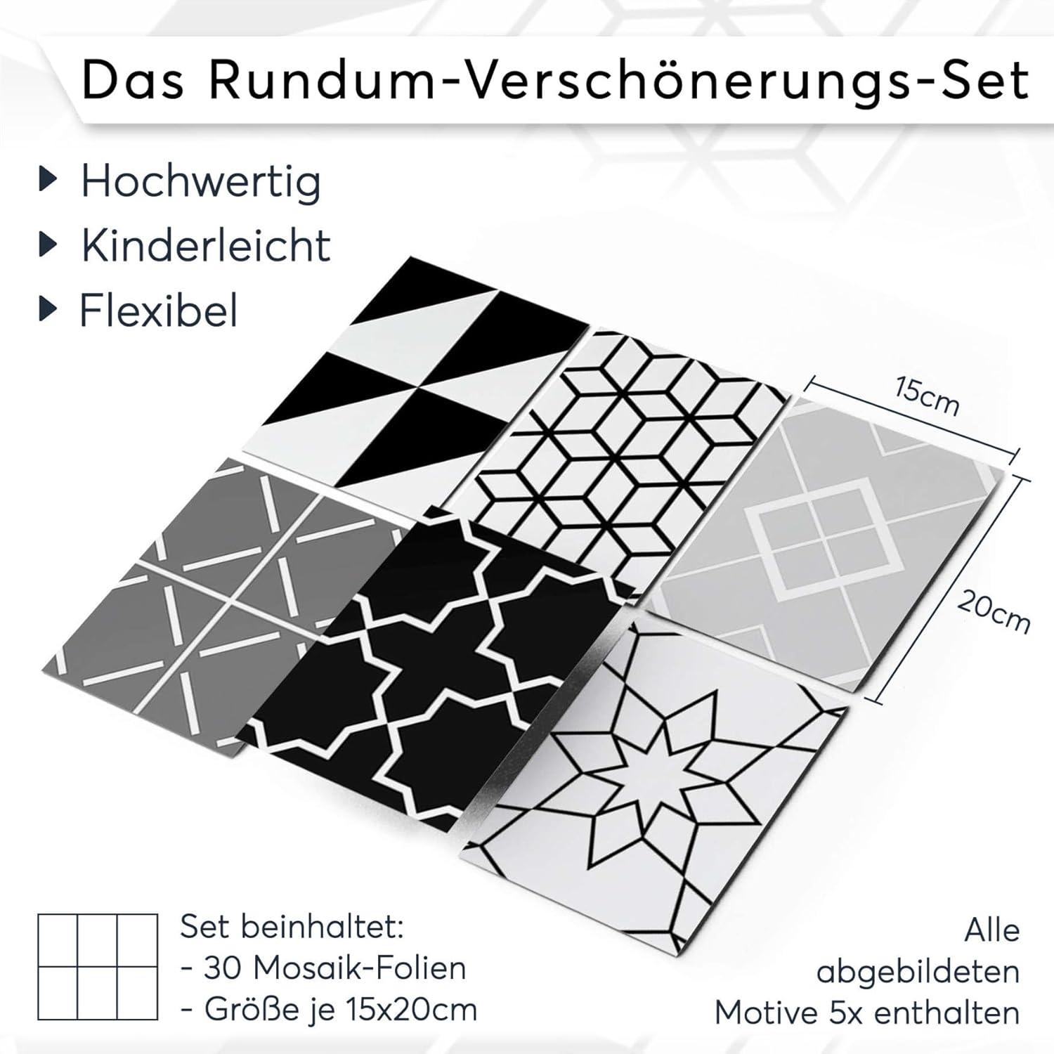 - QUALITÄT MADE IN GERMANY - [SET MIT 30 FLIESENFOLIEN JE 15x20 CM] - Original CREATISTO Fliesenaufkleber, entwickelt für Fliesen in Küche, Bad und WC. In Deutschland gefertigt mit hochwertigen und umweltfreundlichen Materialien!