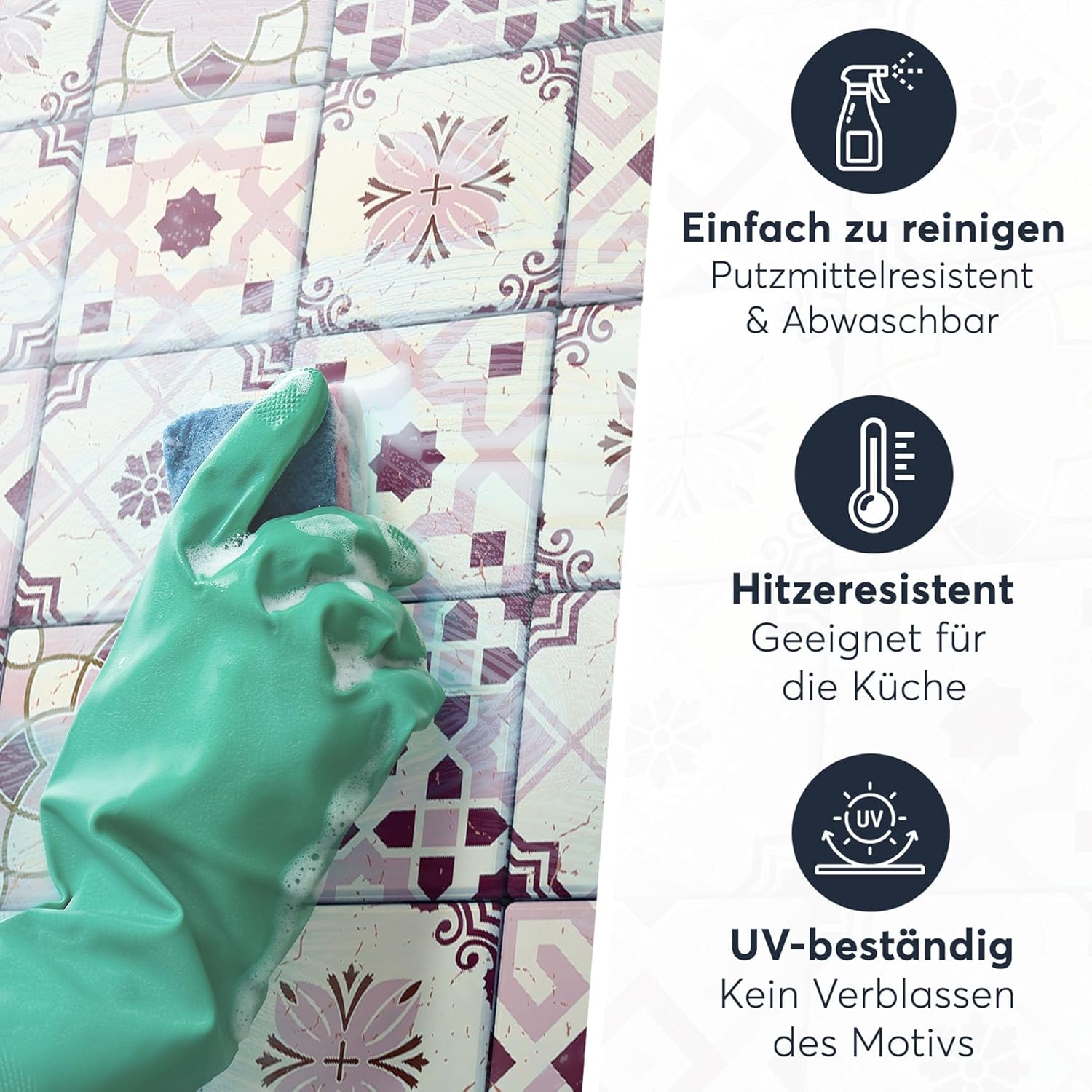 • HOCHWERTIGE VERARBEITUNG - Passgenauer Zuschnitt, hochwertige Druckverfahren und beste Materialien zeichnen unsere Fliesensticker aus. 100% Zufriedenheitsgarantie mit unseren Klebefliesen!