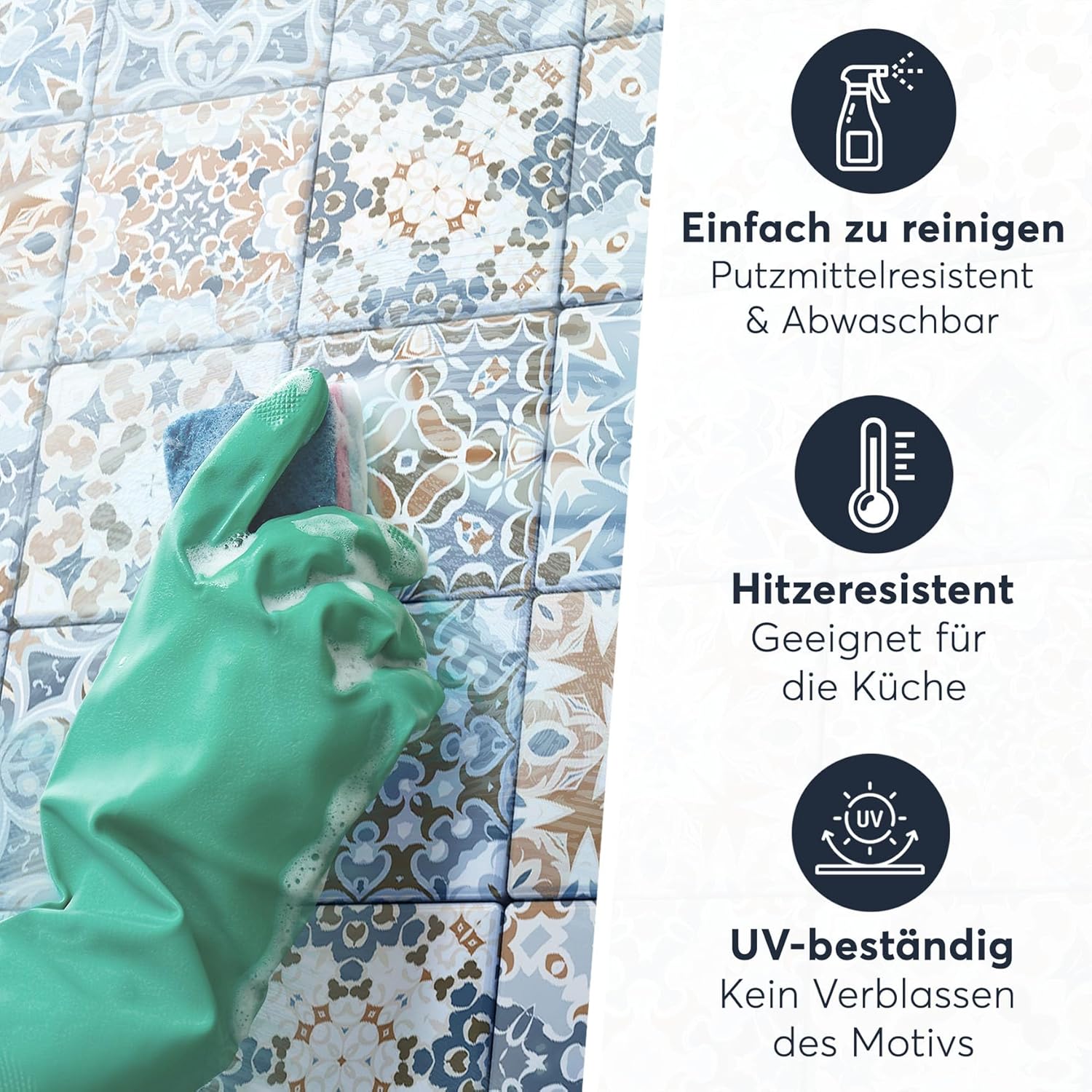 • LANGLEBIG UND ROBUST - Nahezu unbegrenzt haltbar, Wasserfest, Kratzfest, Putzmittelbeständig, Hitzebeständig bis 80 °C, kein Ausbleichen! Jederzeit wiederablösbar - Ideal für Mietwohnungen!