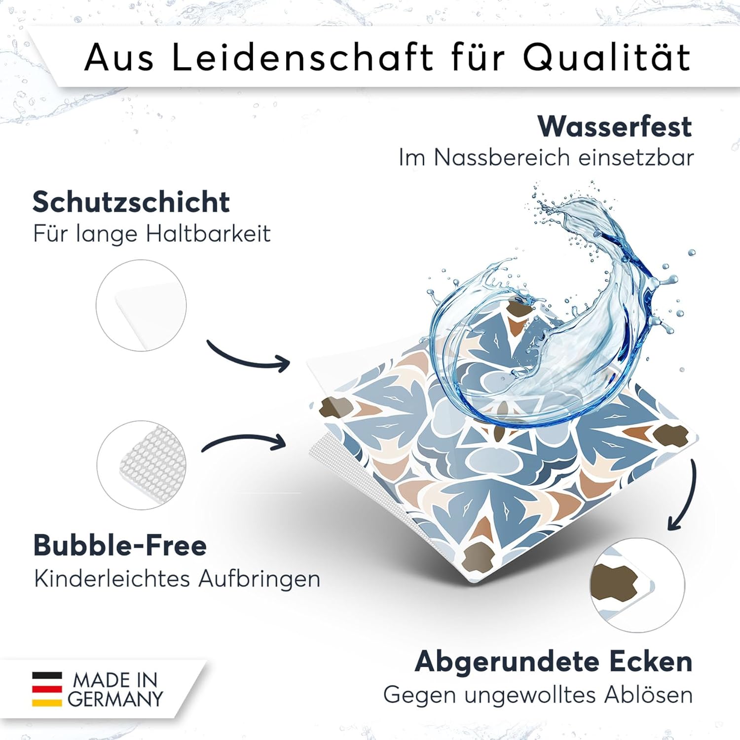 • HOCHWERTIGE VERARBEITUNG - Passgenauer Zuschnitt, hochwertige Druckverfahren und beste Materialien zeichnen unsere Fliesensticker aus. 100% Zufriedenheitsgarantie mit unseren Klebefliesen!